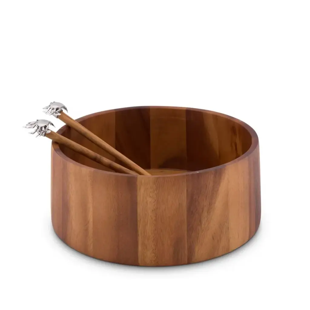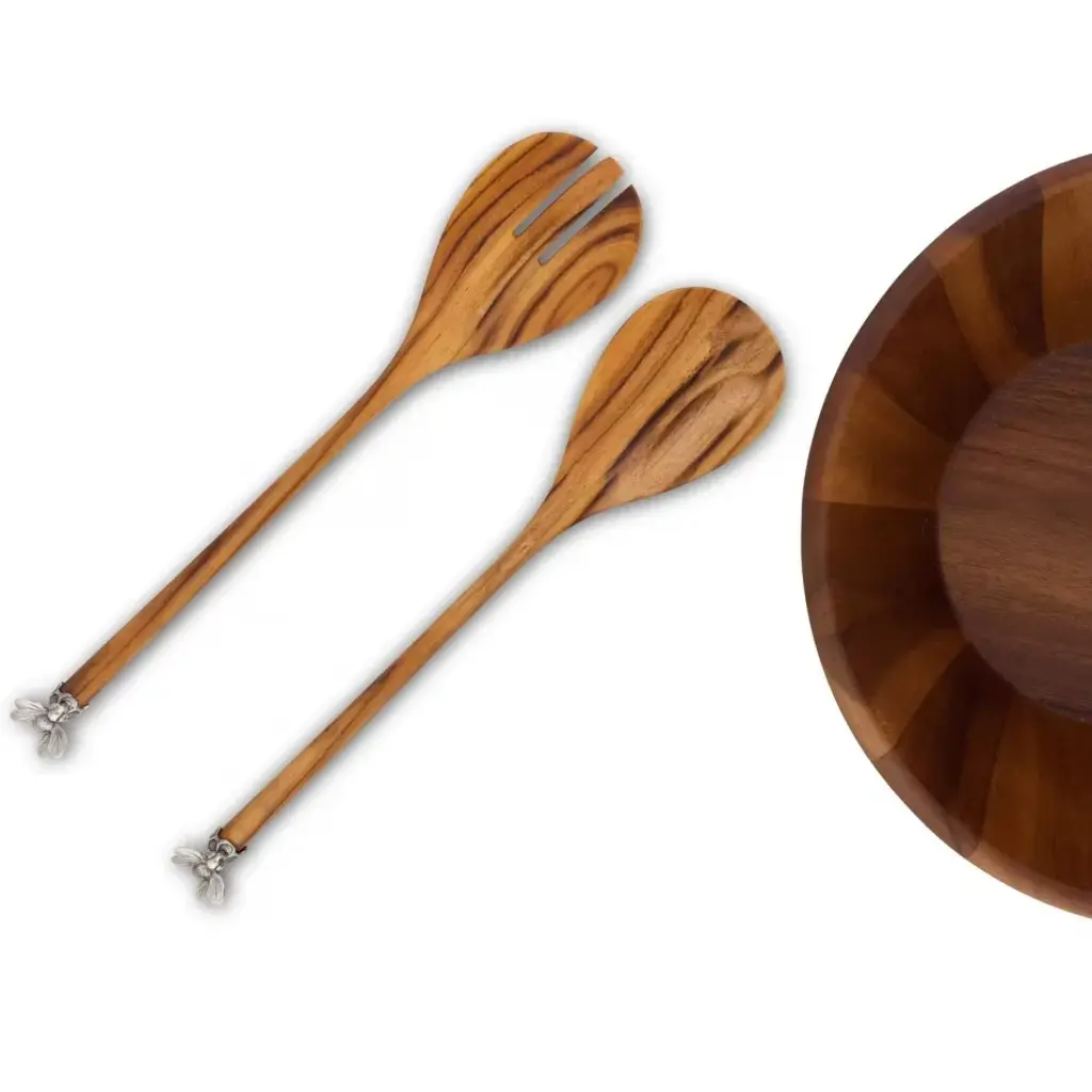 Vagabond House’s popular Bee Hive Salad Serving Bowl has been packaged with a cute set of pewter Bee topped salad servers making a complete gift set. Exquisite, chatoyant Acacia is rib-milled creating a salad bowl that truly looks like a bee hive. The matching wood servers are each topped with an intricately detailed pewter bee. This lovely salad service set is an excellent gift, for hosts, housewarmings, weddings and you. Vagabond House is a family-owned American company specializing in fine pewter tableware, servingware and giftware. Largely inspired by nature, their exclusive products are designed to be unique, functional heirlooms for those who seek to express tradition and style in both family and formal entertaining.