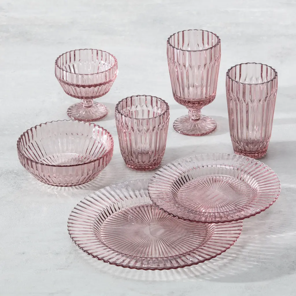 Inspired by the gothic architecture found in the western Sardinian city of Alghero, Fortressa's Archie blends color, light and structured form in a beautiful glass dinnerware collection. The molded facets put a tactile heft in the hand and refract the light, creating dramatic shadow play. Made of soda-lime-silica with magnesium oxide and alumina for durability, Fortessa Glass adds shine and texture to today's tablescapes.