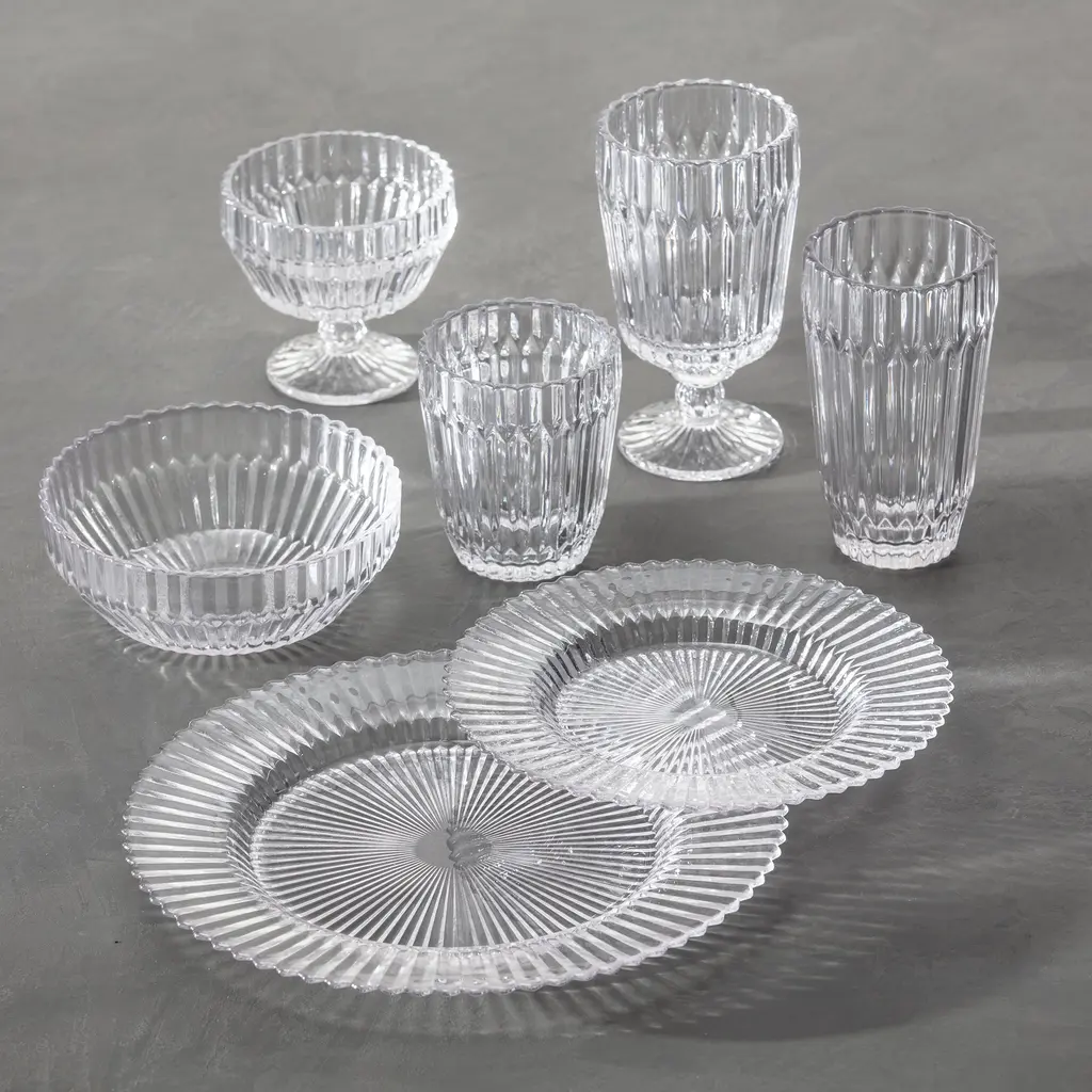 Inspired by the gothic architecture found in the western Sardinian city of Alghero, Fortressa's Archie blends color, light and structured form in a beautiful glass dinnerware collection. The molded facets put a tactile heft in the hand and refract the light, creating dramatic shadow play. Made of soda-lime-silica with magnesium oxide and alumina for durability, Fortessa Glass adds shine and texture to today's tablescapes.
