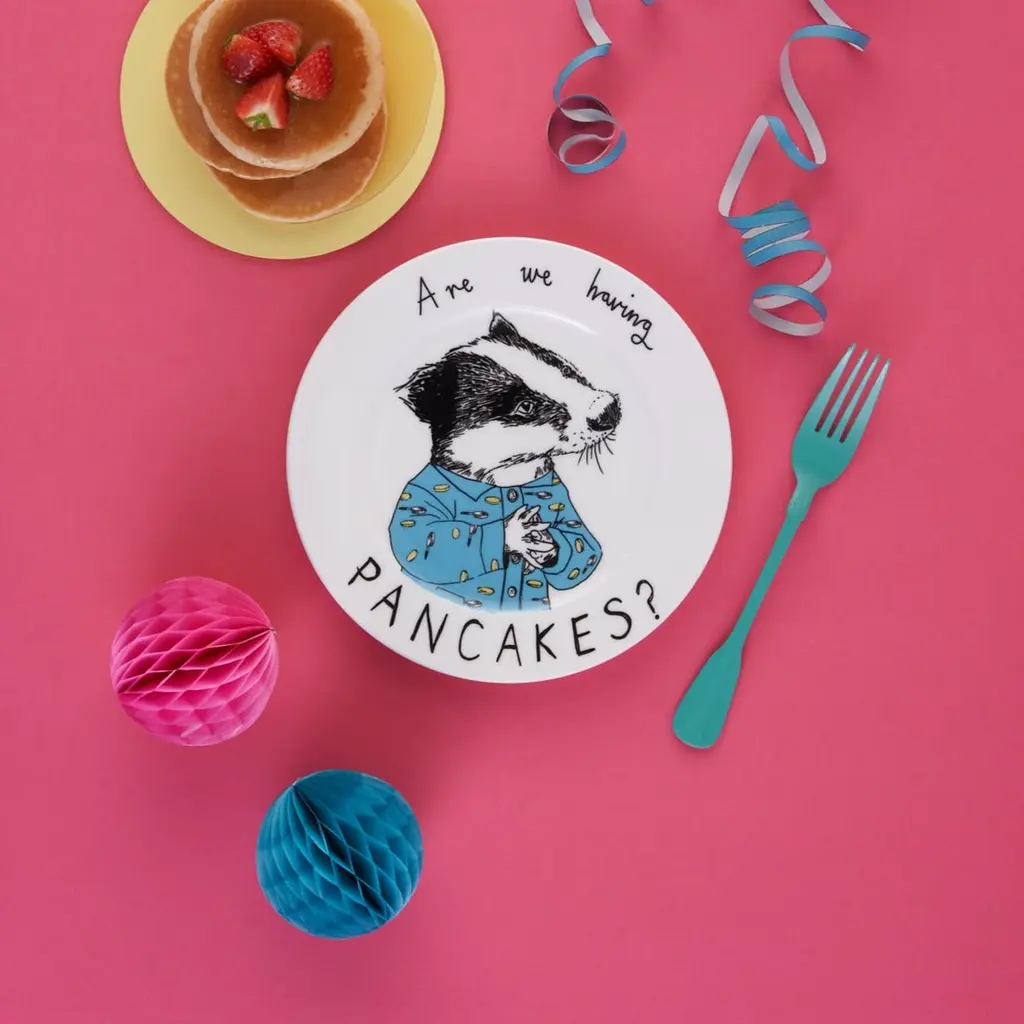 A pancake plate is for every day, not just for Pancake Day! This excitable badger makes the perfect gift for you or the pancake lovers you know.Original illustration by me.Can be used for eating pancakes or display.