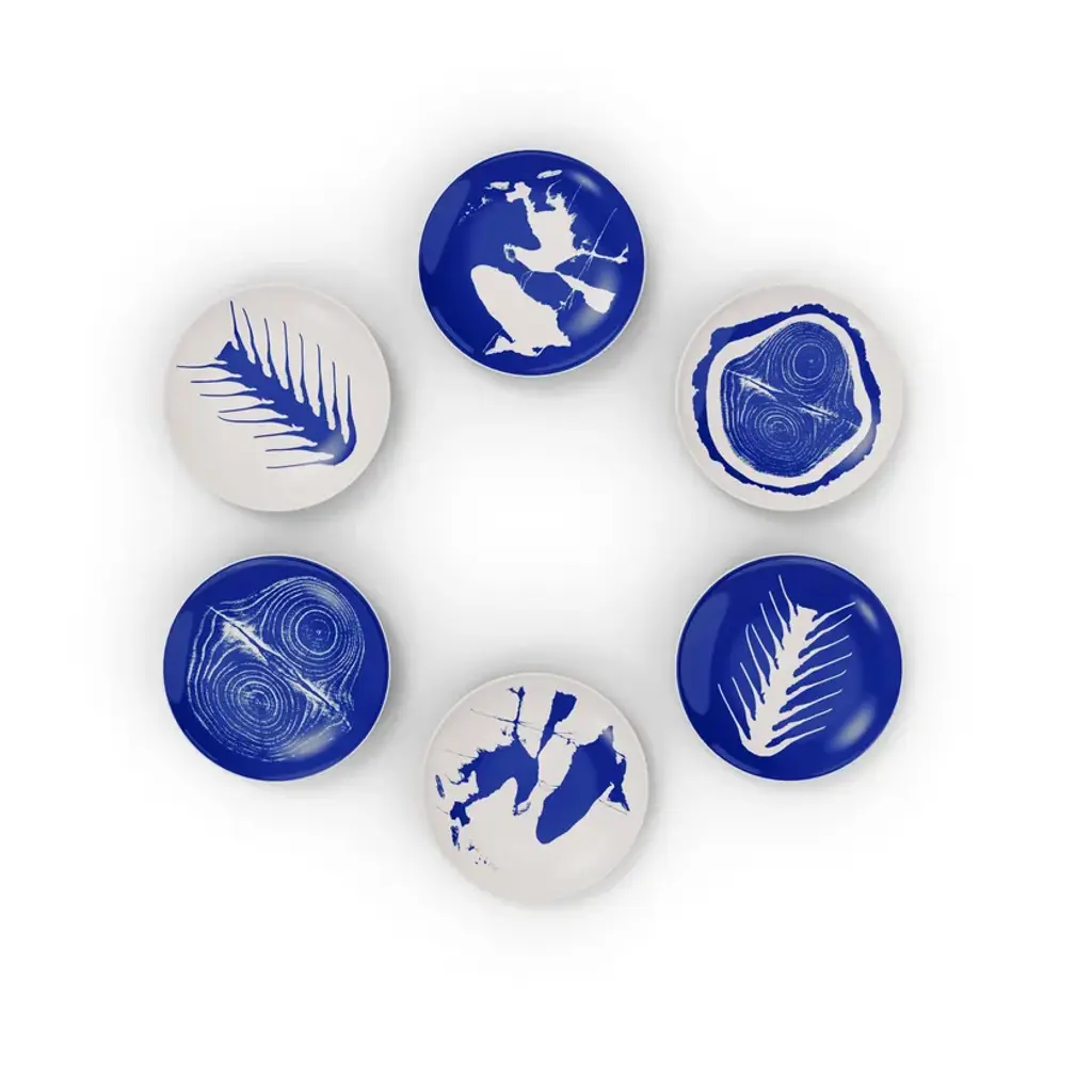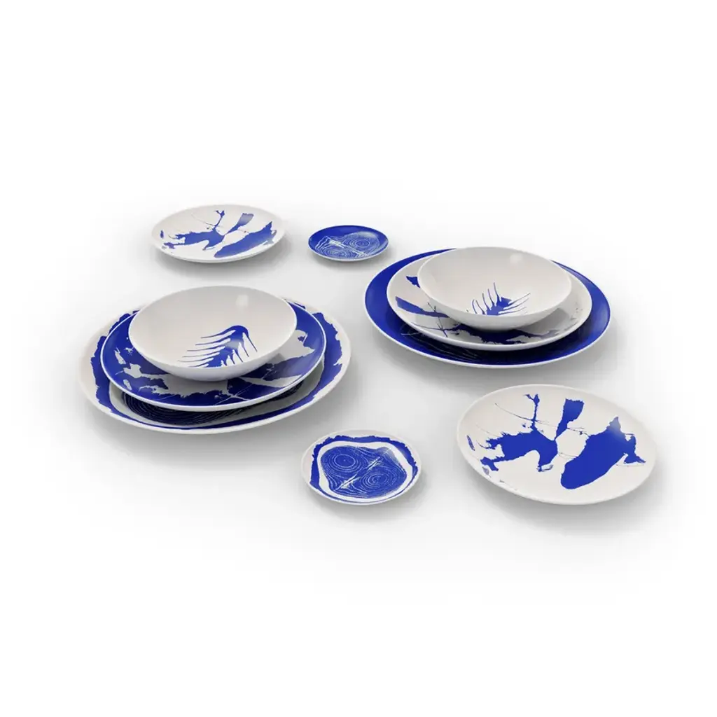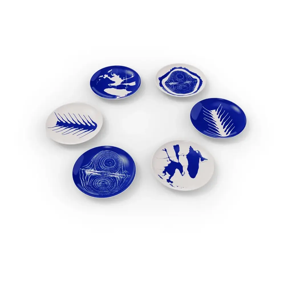 Set of 2 dessert plates - Arête.Le Monde de Charlotte Perriand: a new tableware collection inspired by her passion for nature: Cassina continues its collaboration with Ginori 1735 and presents the finest porcelain dinner set inspired by the photography of Charlotte Perriand. Hand decorated and characterised by patterns that combine the colours blue and white, this striking set of plates is the perfect proposal to embellish any dinner table. The Le Monde de Charlotte Perriand collection includes a service plate, a dinner plate, a bowl and a side/dessert plate, presented in a set of two, with three different decorations that can be mixed and matched. To guarantee authenticity, each piece is marked with the Cassina and Ginori 1735 logos.