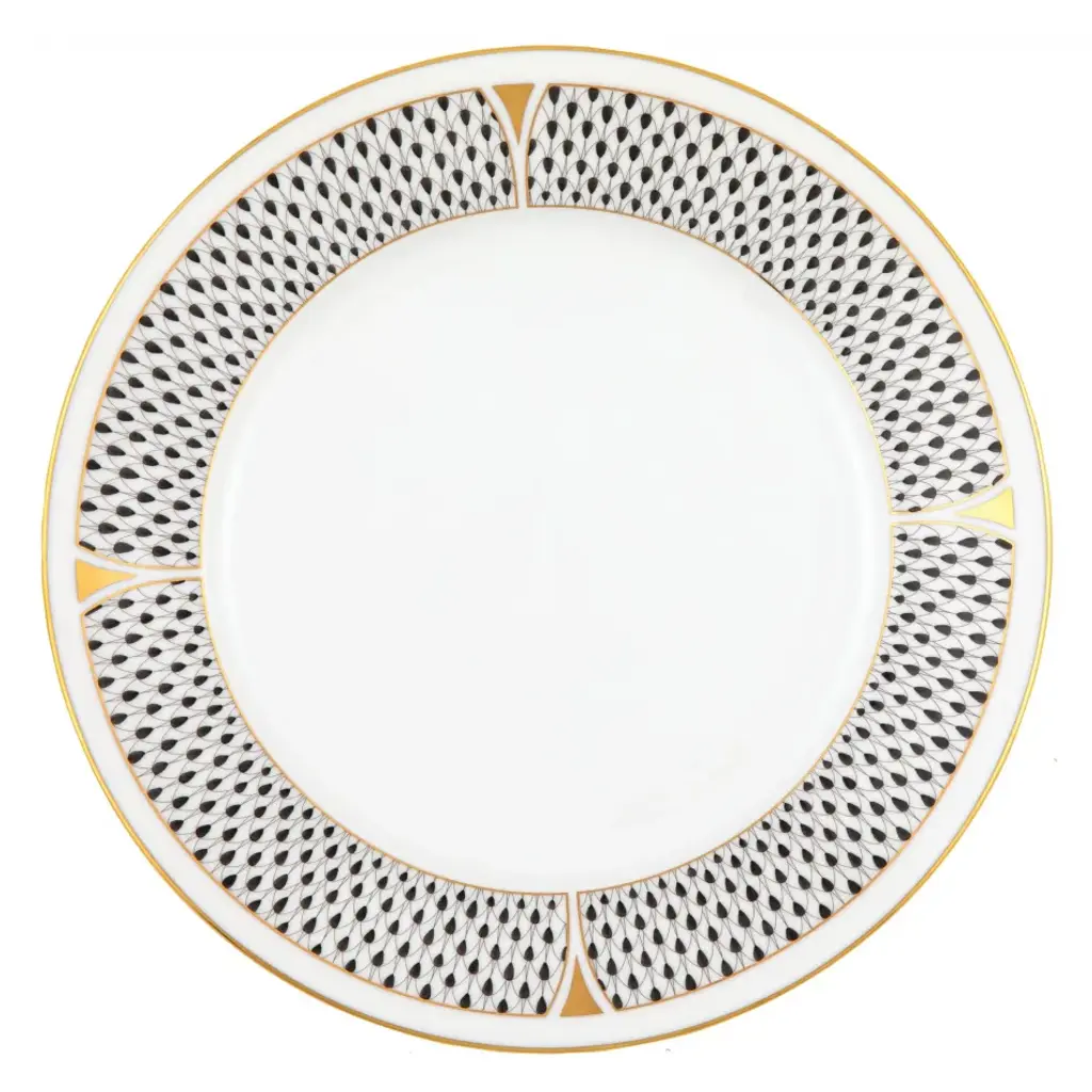 Herend fishnet lovers can rejoice since their favorite design has made the leap to dinnerware. The Art Deco pattern combines the fishnet motif with geometric inflection points in 24K gold which add dramatic pops of interest. Together, these two styles contribute a captivatingly modern composition to the Herend oeuvre. Handpainted in Hungary. Now the biggest porcelain manufactory in Europe, Herend was founded in 1826 to produce earthenware in the small Hungarian village for which it was named. At the time, Hungary was flooded with low-cost pottery, but in 1839, Mor Fischer became the Manufactory’s new owner and he decided to focus on producing dinnerware replacement pieces for Europe’s royal families to complement their valuable porcelain patterns from Germany and the Far East. As his client base grew, Fischer commissioned his artists to begin designing dinnerware patterns of their own. Queen Victoria’s 1851 purchase of a large set for Windsor Castle was a milestone, setting the stage for aristocrats throughout Europe to clamor for Herend in their estates. In the 1850s, Herend added meticulously-crafted figurines to its creations. Herend’s trademark fishnet pattern, which is widely recognized and prized as Herend’s signature design, started in 1858 when an artist who was intrigued with a Chinese plate’s fish scale design painted it onto a rooster figurine to imitate feathers.