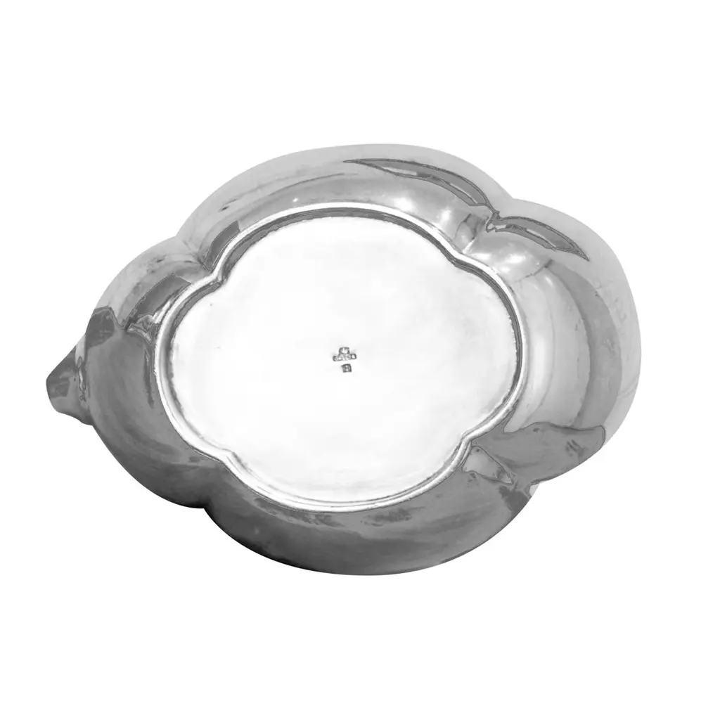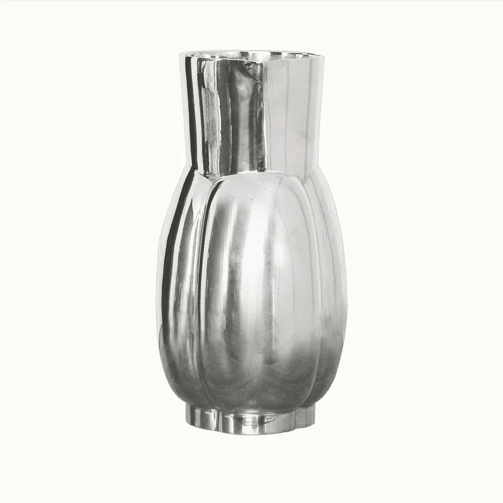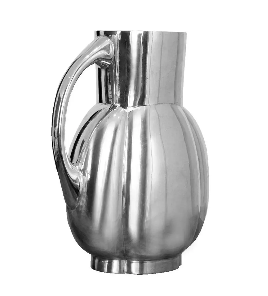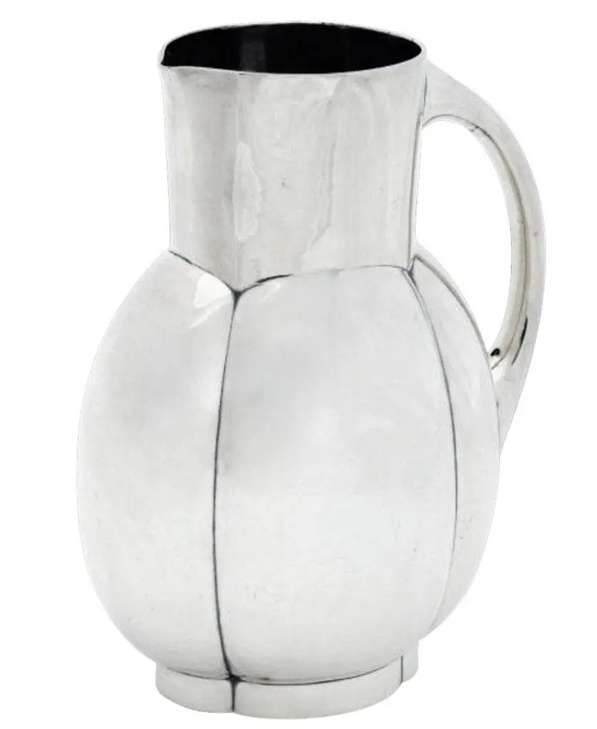 Elegant Art Deco pitcher shaped with melon-style ribs on a quatrefoil base designed by Christian Fjerdingstad who was a Danish sculptor born in 1891. When he came to France, he created some gorgeous pieces for Gallia and some were edited by Christofle after the thirties.Marked beneath with the GALLIA hallmarks and numbered 5885 (number of the model).Bibliographie :Chappey, Frédéric ; Dendenroth-Schou, Poul ; Kaerulf Moller, Lars et al., Ambre et argent. Christian Fjerdingstad (1891-1968). Un orfèvre danois Art déco. Paris, Somogy Editions d'art, 1999, p. 27CHRISTIAN FJERDINGSTAD (1891-1968) was born in Danemark in 1891 and first worked as a silversmith in his country before arriving in France in 1915 after its demobilization. When he arrived, he met Fernand Léger and became friend with him, this last encouraged him to expose his work to the 1921 Salon d’Automne in Paris. He had great success during this exhibition and then was hired by Christofle as the Head of Design, between 1924 and 1939. At the same time, he was continuing to create items under his own name. He was skilled to work both with pewter and silver and liked to mix them with other materials such as coral, horn or amber. He was the creator of a new formal vocabulary and can be considered as one of the creators of the Art Deco style and a contributor to the renewal of early 20th century silverware.