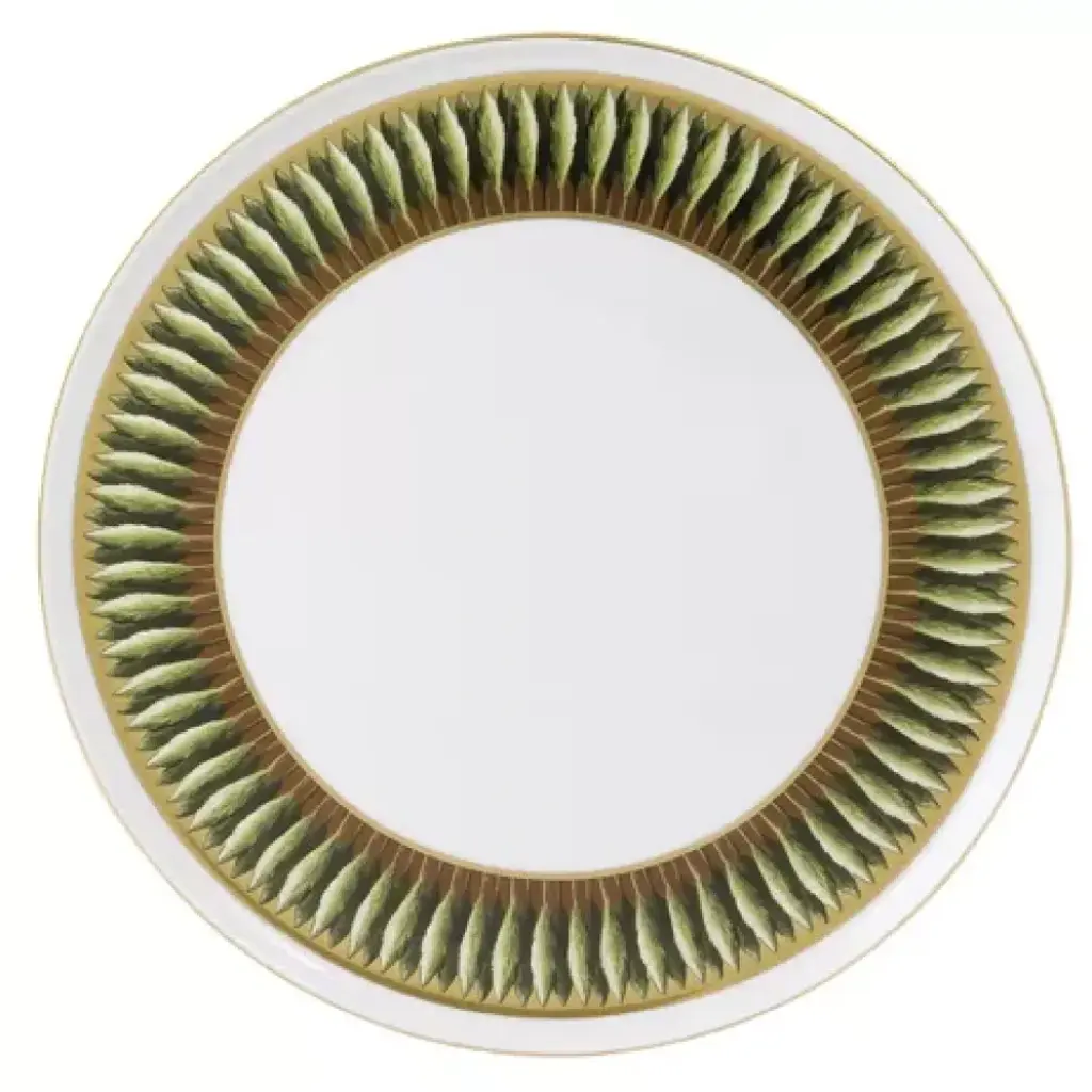 Herend fishnet lovers can rejoice since their favorite design has made the leap to dinnerware. The Art Deco pattern combines the fishnet motif with geometric inflection points in 24K gold which add dramatic pops of interest. Together, these two styles contribute a captivatingly modern composition to the Herend oeuvre. Handpainted in Hungary. Now the biggest porcelain manufactory in Europe, Herend was founded in 1826 to produce earthenware in the small Hungarian village for which it was named. At the time, Hungary was flooded with low-cost pottery, but in 1839, Mor Fischer became the Manufactory’s new owner and he decided to focus on producing dinnerware replacement pieces for Europe’s royal families to complement their valuable porcelain patterns from Germany and the Far East. As his client base grew, Fischer commissioned his artists to begin designing dinnerware patterns of their own. Queen Victoria’s 1851 purchase of a large set for Windsor Castle was a milestone, setting the stage for aristocrats throughout Europe to clamor for Herend in their estates. In the 1850s, Herend added meticulously-crafted figurines to its creations. Herend’s trademark fishnet pattern, which is widely recognized and prized as Herend’s signature design, started in 1858 when an artist who was intrigued with a Chinese plate’s fish scale design painted it onto a rooster figurine to imitate feathers.