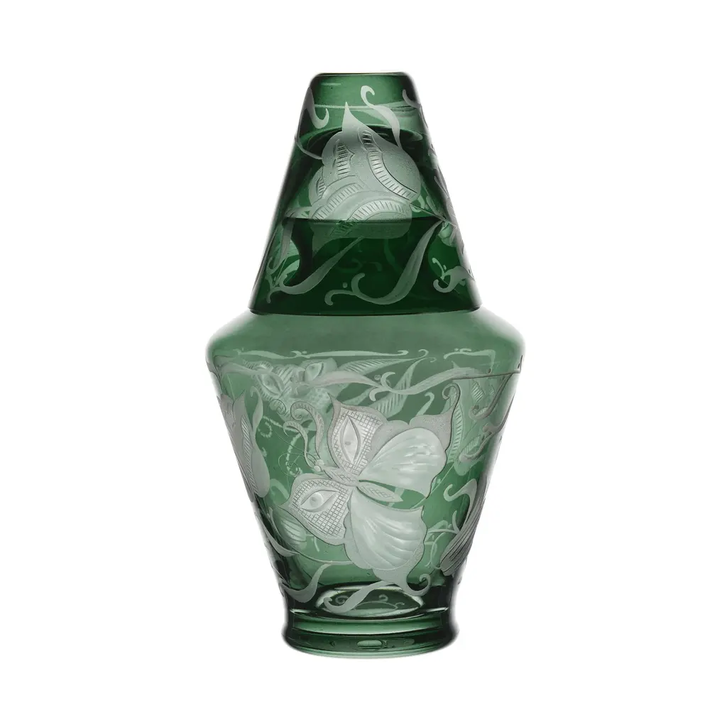 Looking for a different color or set quantity? ARTEL crystal glassware is available in over 30 beautiful colors, which can be applied to most motifs. For more information on customization options, please reach out to custom@chairish.com. Lead time for all ARTEL glassware is 9-12 weeks as each piece is made to order and handmade, just for you. Featuring not only richly engraved butterflies but also interwoven blossoms and vines, SOCIAL BUTTERFLIES lends a taste of the great outdoors to any home décor setting. The Bedside Decanter is a stylish way to keep fresh water (or other refreshments) on the nightstand, it features an innovative lid that doubles as a drinking glass. DECANTER Dimensions are 5.5" H x 4" W; 15.2 oz GLASS Dimensions are 3" H x 3" W; 3.4 oz CARE INSTRUCTIONS: Product care should be followed to ensure that your glass retains its quality for many years and generations to come. • Not recommended for the dishwasher. • Hand wash immediately after use with a soft sponge, mild soap and warm water. • Dry immediately with a soft cloth to avoid spots. • Do not soak, even in plain water, or leave unwashed overnight. • Avoid any detergent or mild soap with lemon or other acidic agents. • Do not use abrasive cleaners, steel wool or scouring pads that can scratch the glass.
