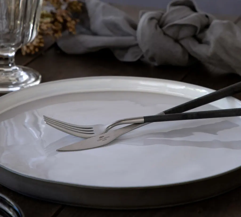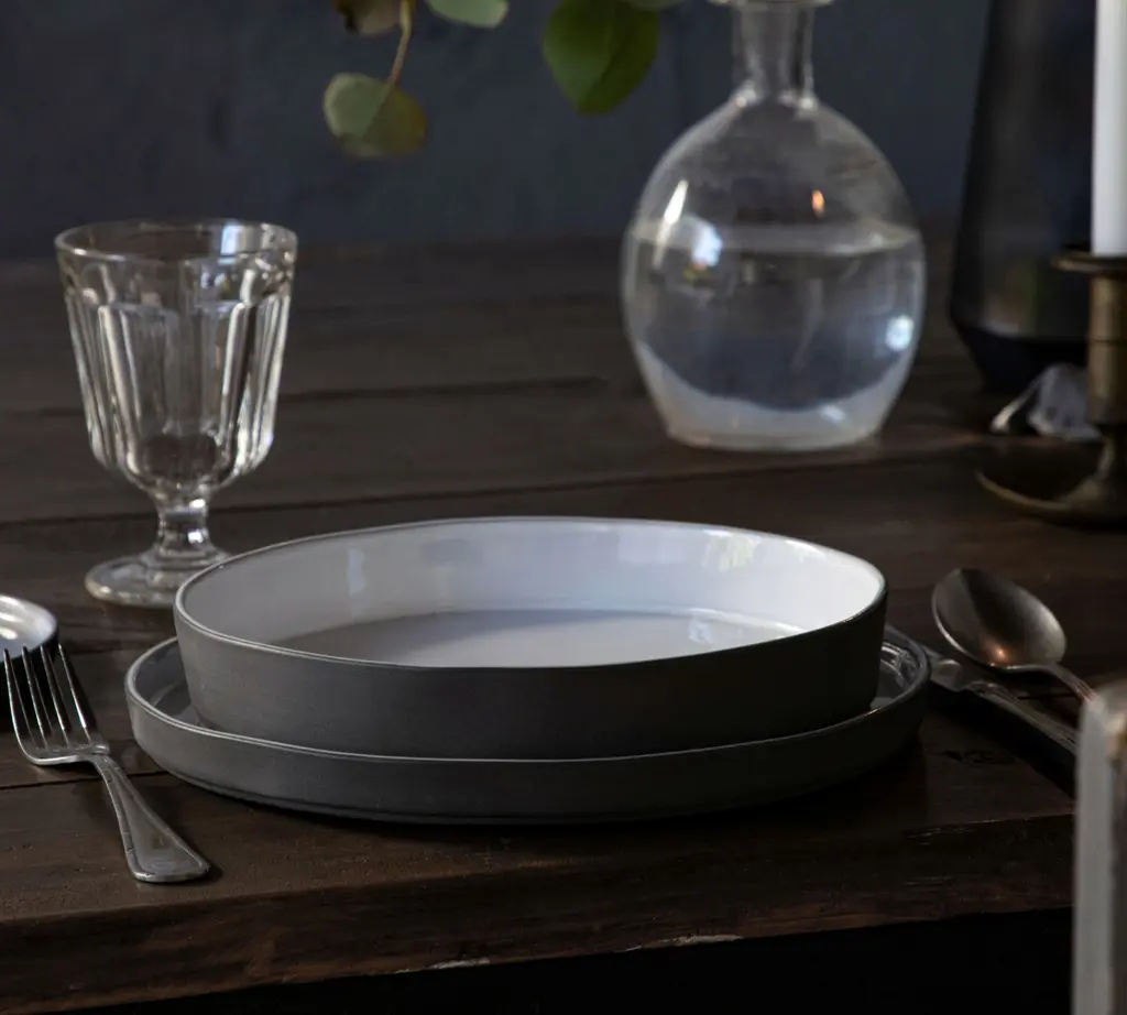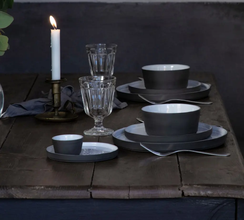 Designed for gathering together, this collection was crafted in a Portuguese fishing village from recycled stoneware. Fired once at a high temperature, each piece is durable and dishwasher safe. We love their rich contrast, pairing glossy, modern surfaces with the unglazed and artisanal.