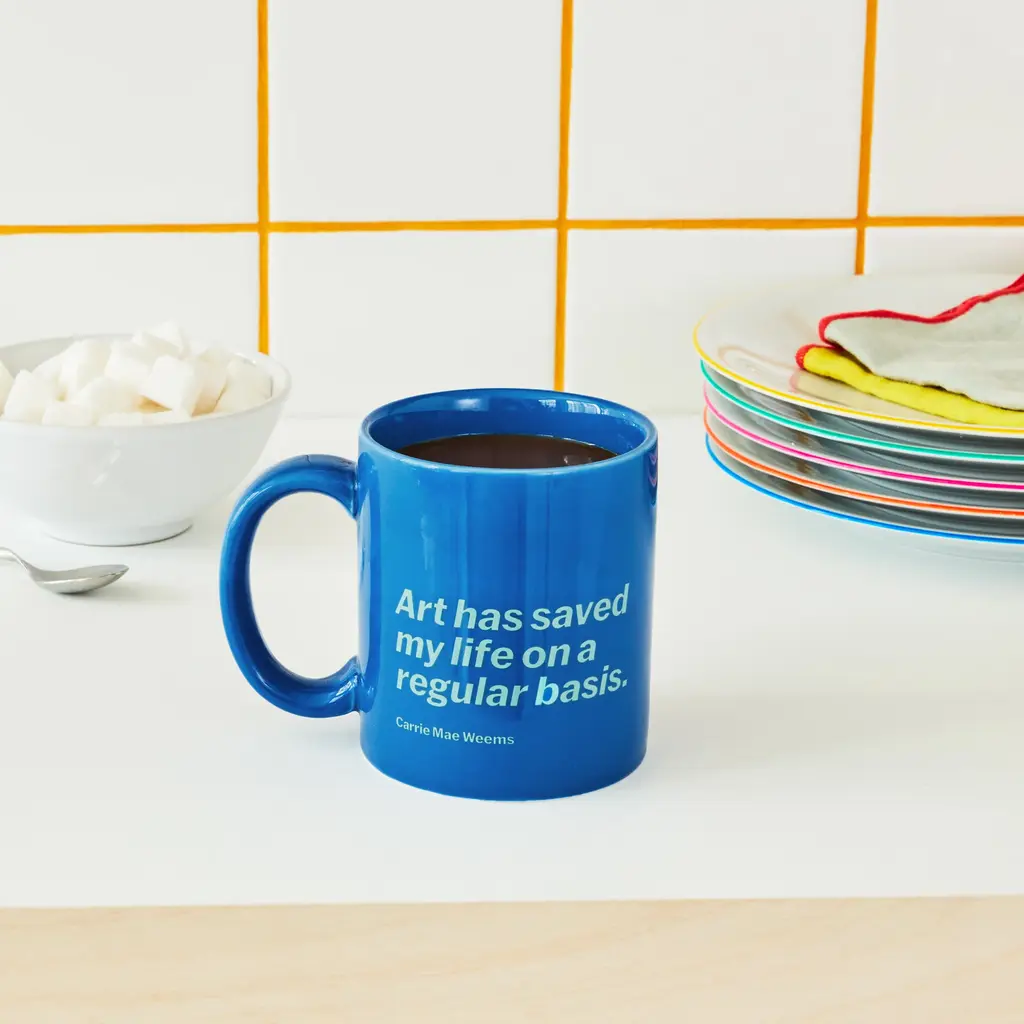 MoMA Exclusive: This boldly colored ceramic mug is printed with a quote from an artist whose work is represented in MoMA’s collection. The Artist Quote Ceramic Mug measures 4h x 3.25w x 4.75"d. and holds 12oz. Dishwasher-safe.