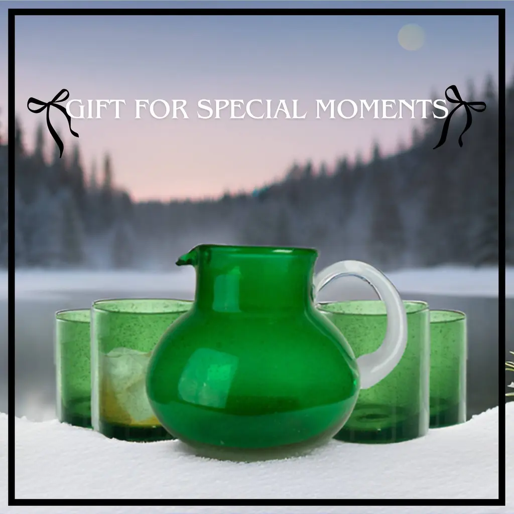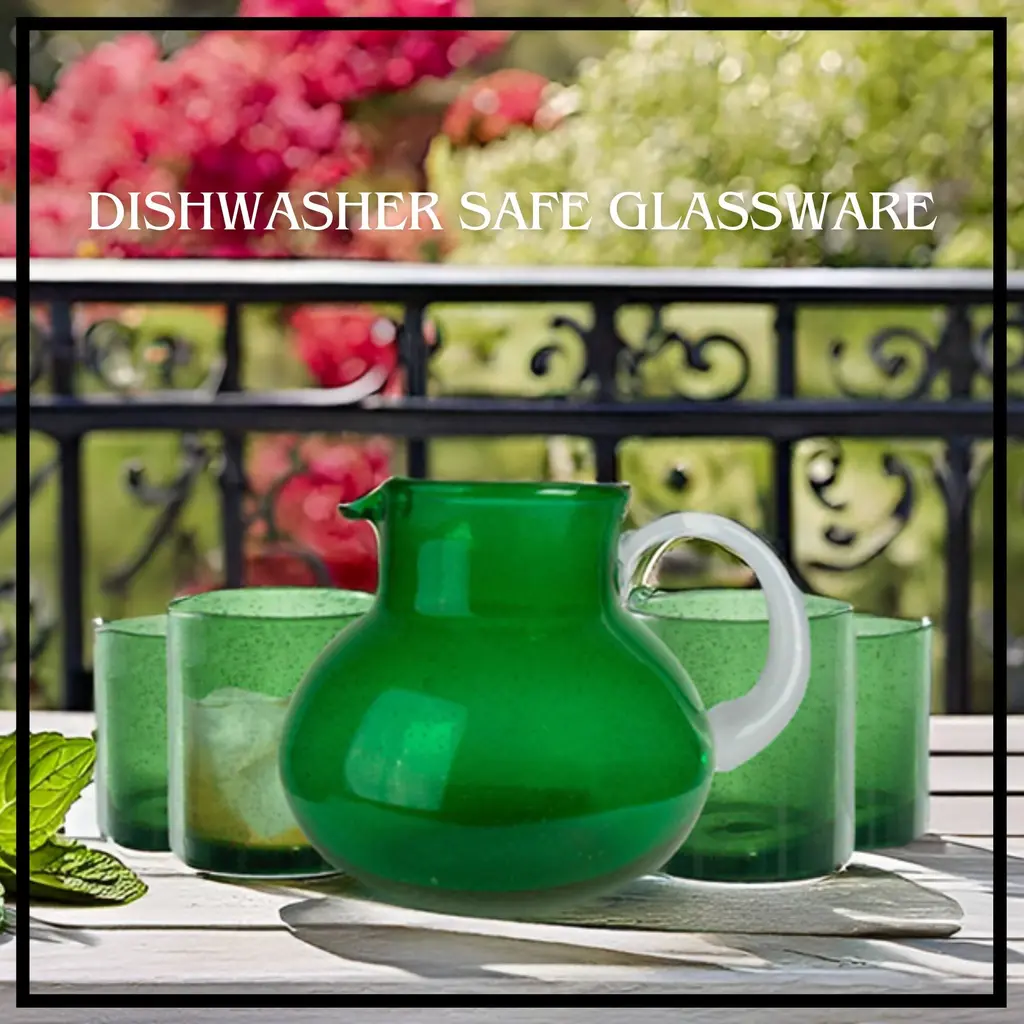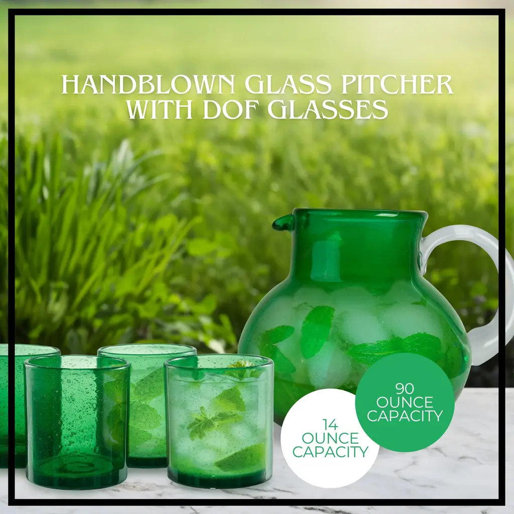 Artland Iris Pitcher With Dof Glasses Set - 9" L X 7.6' W X 7.3" H - Green Glasses And Pitcher