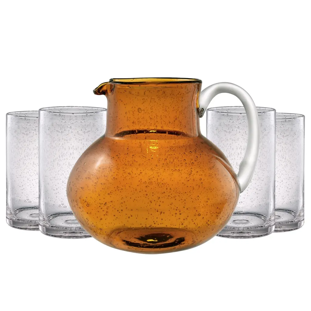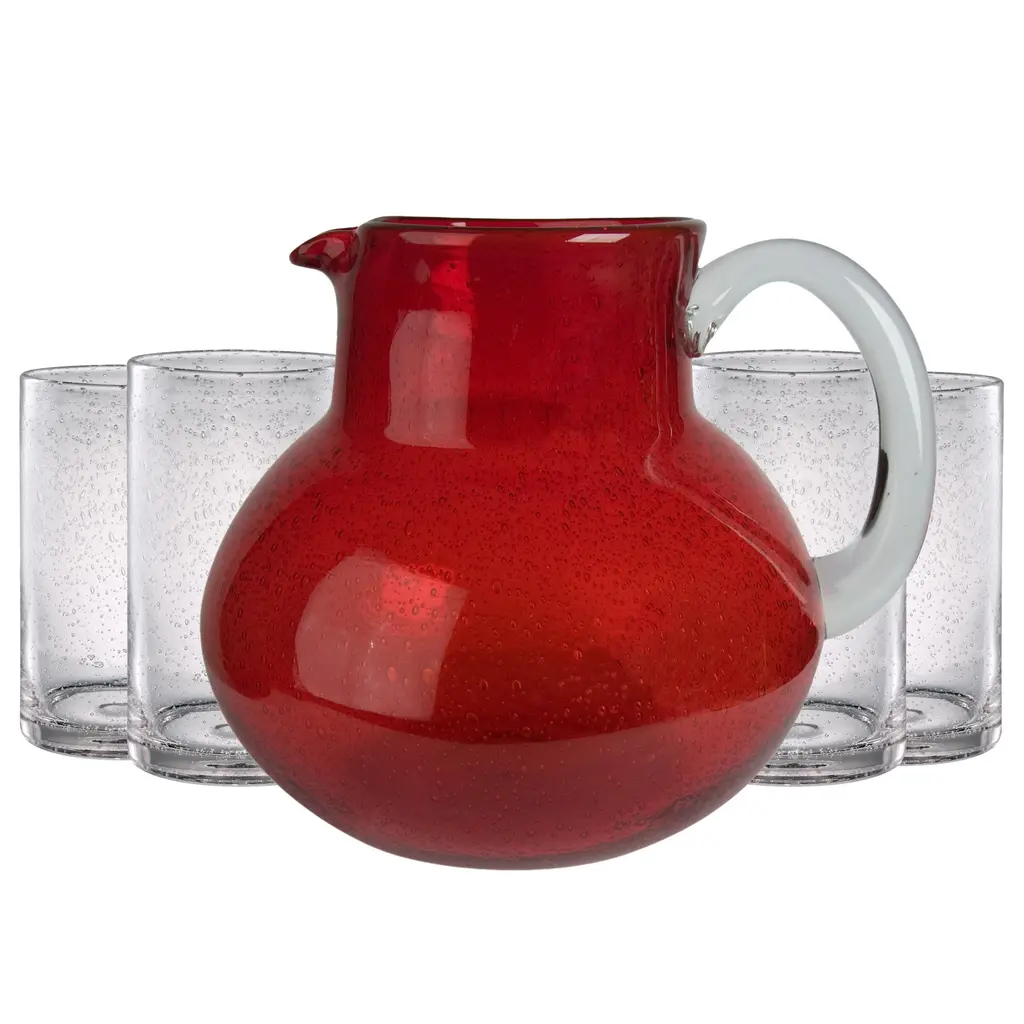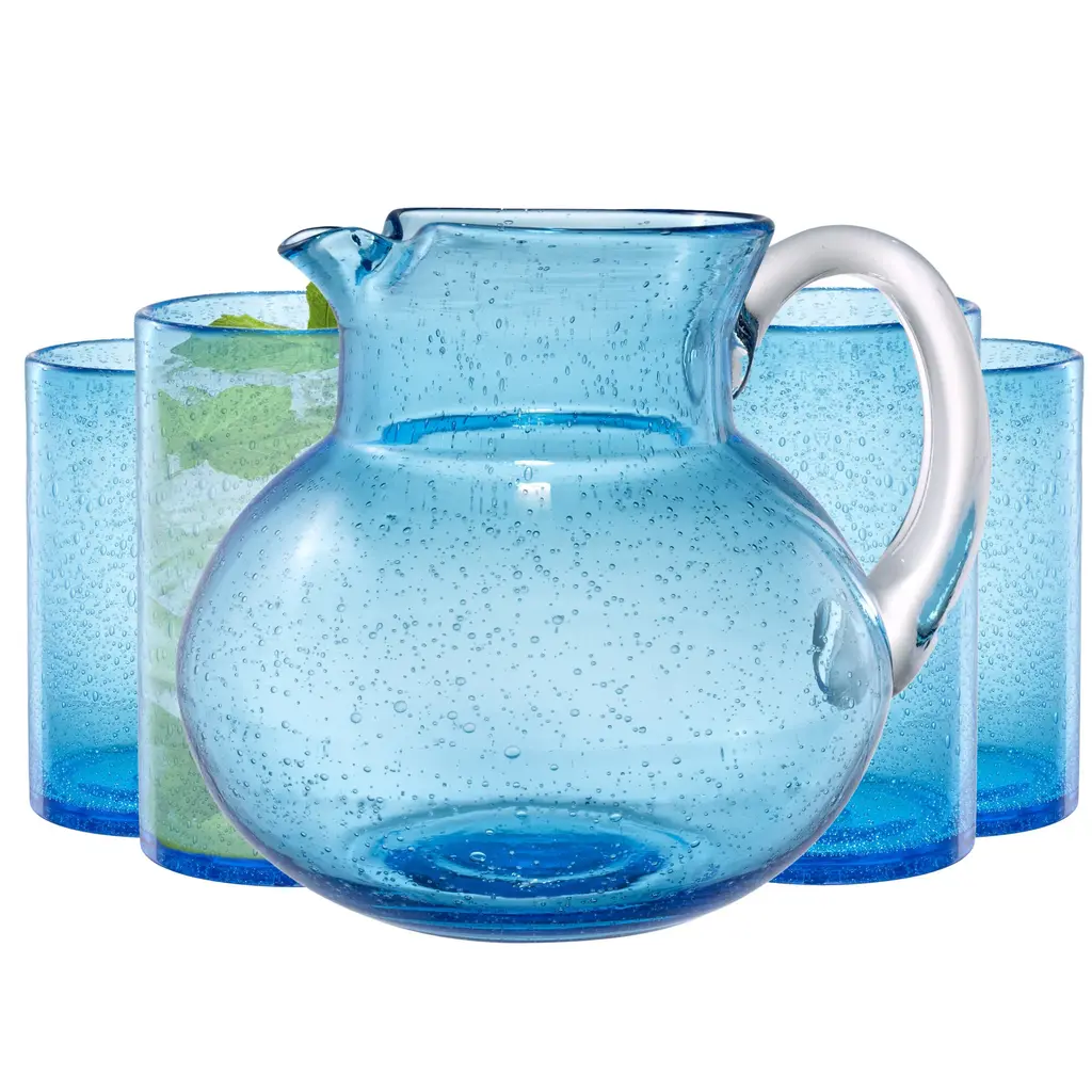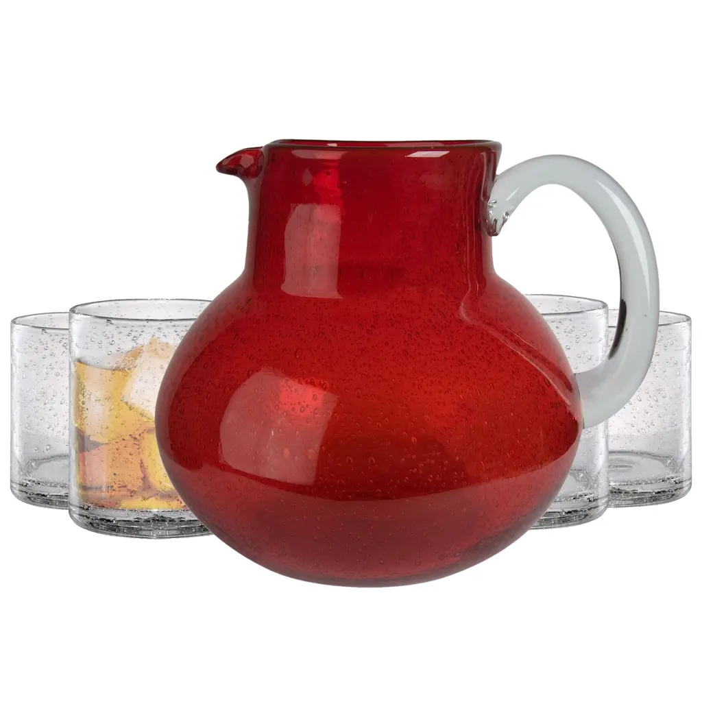 Artland Iris Pitcher with DOF Glasses SetArtland Iris 90oz Hand Blown Pitcher & Double Old Fashion 14oz Glasses (Set of 4) - Lead-Free Bubble Shape Glassware for Stylish Serving and Dining - Kitchen Essential & Table Decor - NewElevate your dining experience with the Artland Iris Hand Blown 90oz Pitcher and 14oz Double Old Fashion Glass Set. This striking glassware set marries artistry with functionality, featuring a unique hand-blown bubble shape that adds character to any table. The 90oz pitcher offers ample capacity for serving a variety of beverages, from water to iced tea, making it a versatile addition to your home. Accompanying the pitcher are four 14oz double old-fashioned glasses, designed for enjoying cocktails, juice, or water with style. Each piece in the set is crafted from lead-free glass, ensuring safe use without compromising on durability or design. The Artland Iris set is ideal for those who appreciate thoughtful details and quality craftsmanship in their everyday dining. Whether hosting a dinner party, enjoying a casual meal, or preparing for a special occasion, this glassware set is sure to impress. Its design complements any table setting, from contemporary to classic, making it an essential piece for both everyday dining and entertaining. Add the Artland Iris set to your collection and enjoy a blend of beauty and practicality in your drinkware.FEATURES:MATERIAL:WHAT'S IN THE BOX:PACKAGING: Retail Packaging