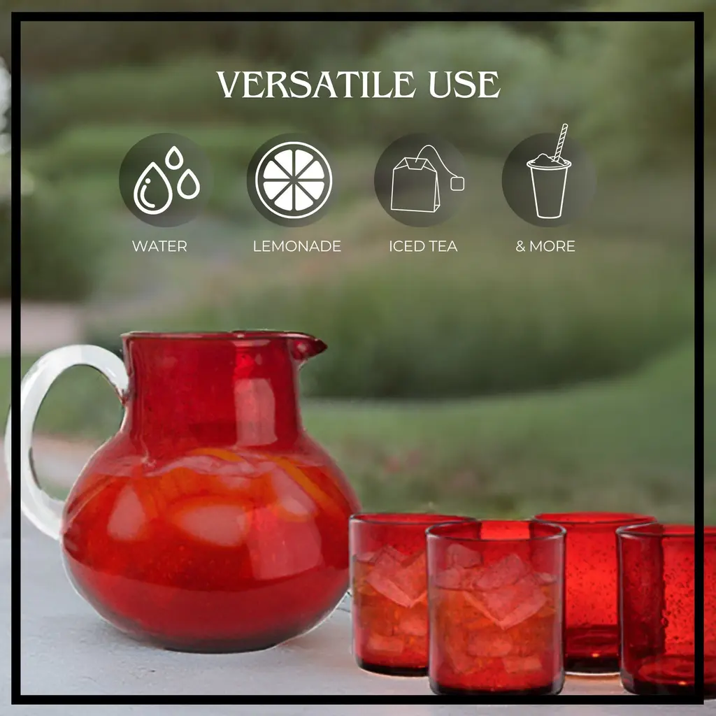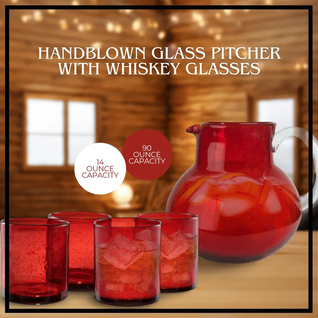 Artland Iris Pitcher with DOF Glasses SetArtland Iris 90oz Hand Blown Pitcher & Double Old Fashion 14oz Glasses (Set of 4) - Lead-Free Bubble Shape Glassware for Stylish Serving and Dining - Kitchen Essential & Table Decor - NewElevate your dining experience with the Artland Iris Hand Blown 90oz Pitcher and 14oz Double Old Fashion Glass Set. This striking glassware set marries artistry with functionality, featuring a unique hand-blown bubble shape that adds character to any table. The 90oz pitcher offers ample capacity for serving a variety of beverages, from water to iced tea, making it a versatile addition to your home. Accompanying the pitcher are four 14oz double old-fashioned glasses, designed for enjoying cocktails, juice, or water with style. Each piece in the set is crafted from lead-free glass, ensuring safe use without compromising on durability or design. The Artland Iris set is ideal for those who appreciate thoughtful details and quality craftsmanship in their everyday dining. Whether hosting a dinner party, enjoying a casual meal, or preparing for a special occasion, this glassware set is sure to impress. Its design complements any table setting, from contemporary to classic, making it an essential piece for both everyday dining and entertaining. Add the Artland Iris set to your collection and enjoy a blend of beauty and practicality in your drinkware.FEATURES:MATERIAL:WHAT'S IN THE BOX:PACKAGING: Retail Packaging