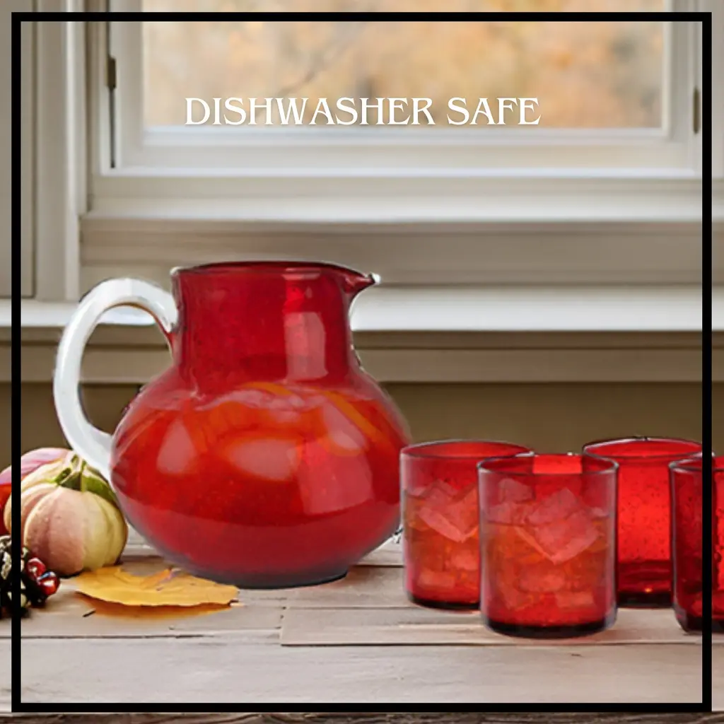 Artland Iris Pitcher With Dof Glasses Set - 90 Oz Pitcher And Dof 14 Oz Glasses - Ruby