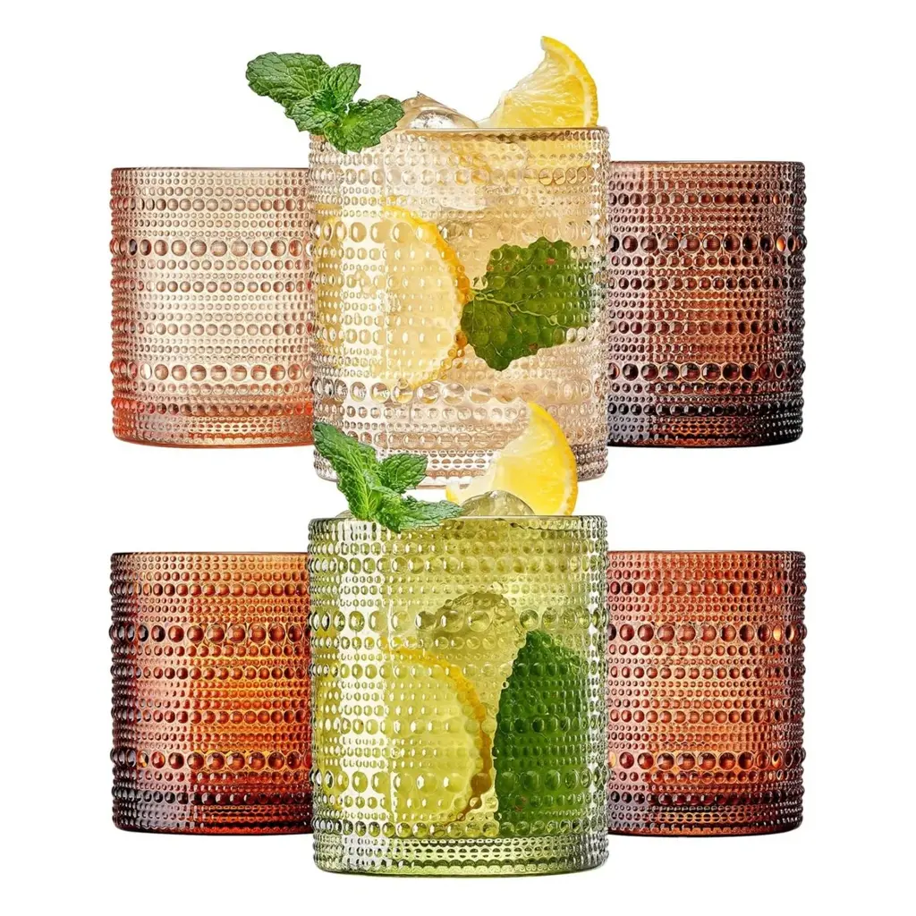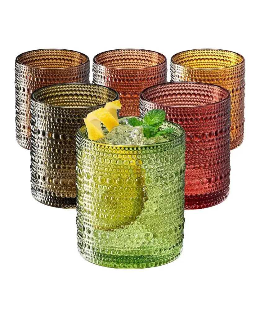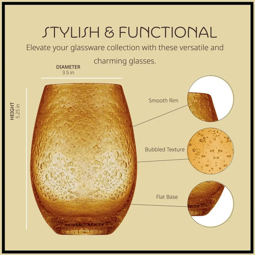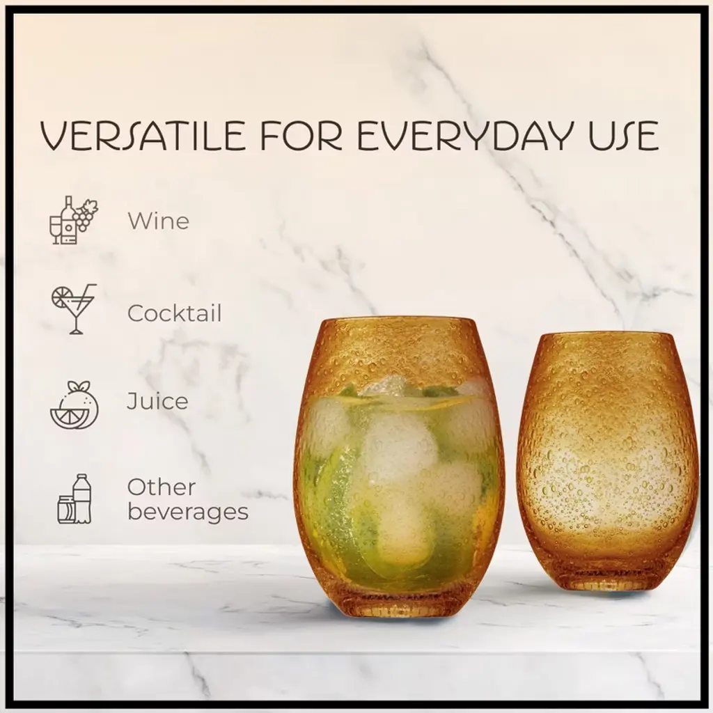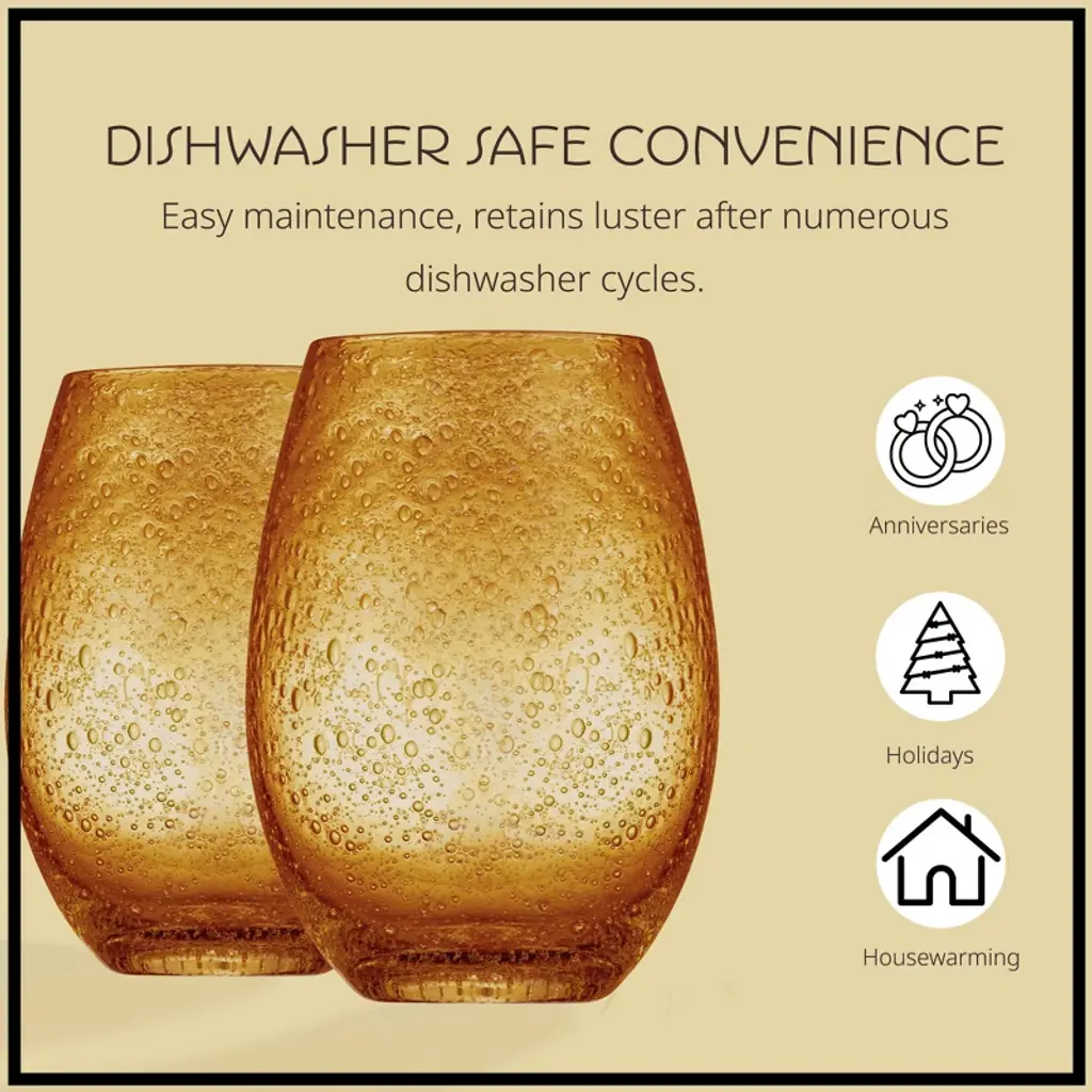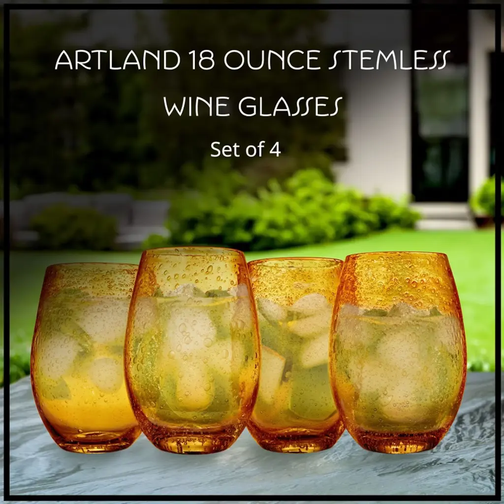 The Artland iris Stemless glass set is gorgeous set of winery drinking glasses that add elegance, color, and fun to your kitchen, table, and home. Use these glasses for sipping on your favorite wines with dinner, or after dinner on the patio. The iris series has become known as one of the most well-known and beautiful glassware sets on the market today. The stemless wineglasses are hand made of some of the finest glass. Each set is hand blown, with a stunning bubble feature. After a night of winery, dinner, or entertaining simply place these wineglasses in the dishwasher for safe washing. Each set comes with 4 glasses, enough to entertain or share winery with the whole family.