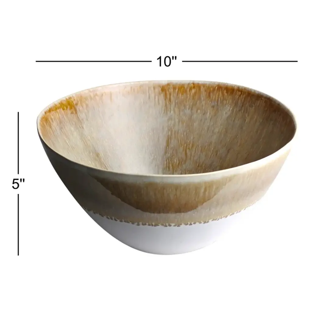 Serve it up. This large stoneware bowl features a layered brown + white glaze that brings visual warmth to the table. It’s oven-, microwave-, and dishwasher-safe, so it goes from prep to presentation to cleanup with ease. Use it for main dishes, fruit, or anything that needs a stylish home base.