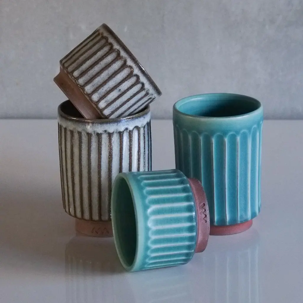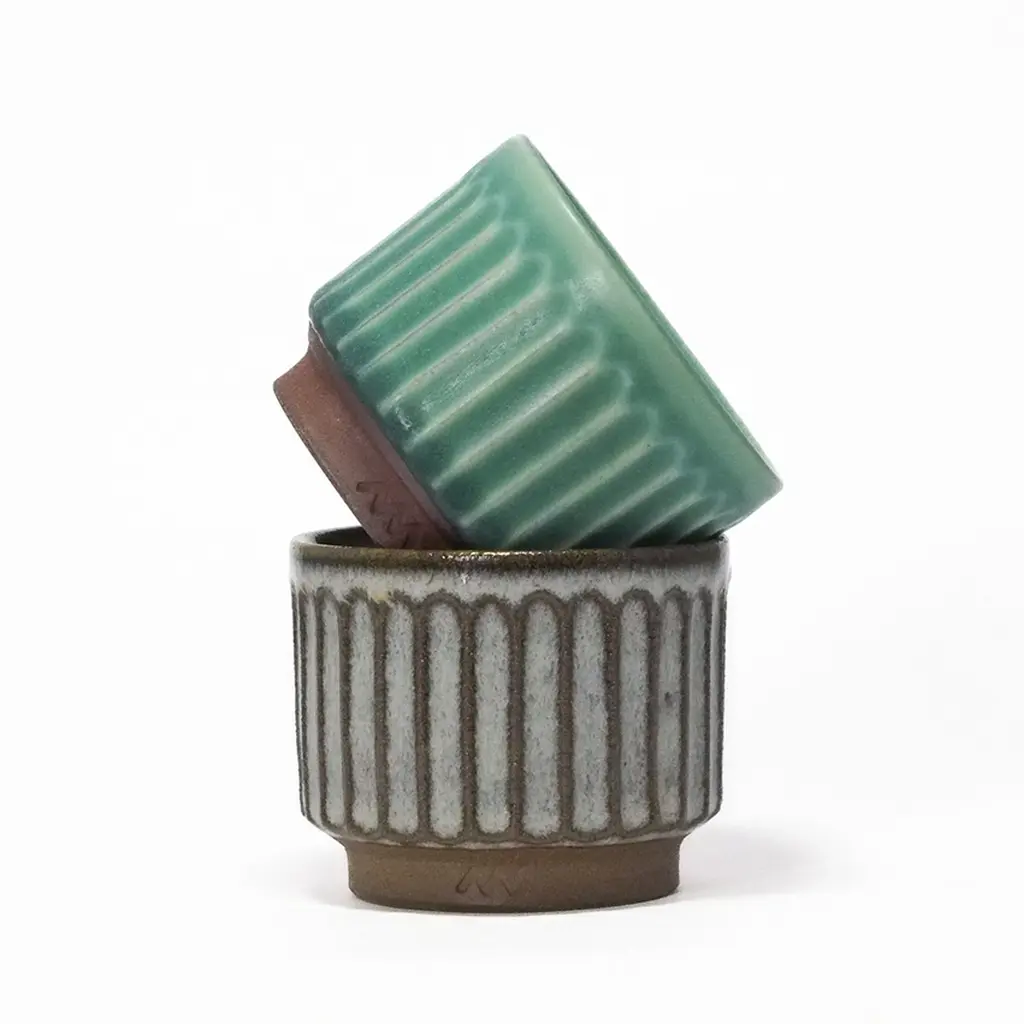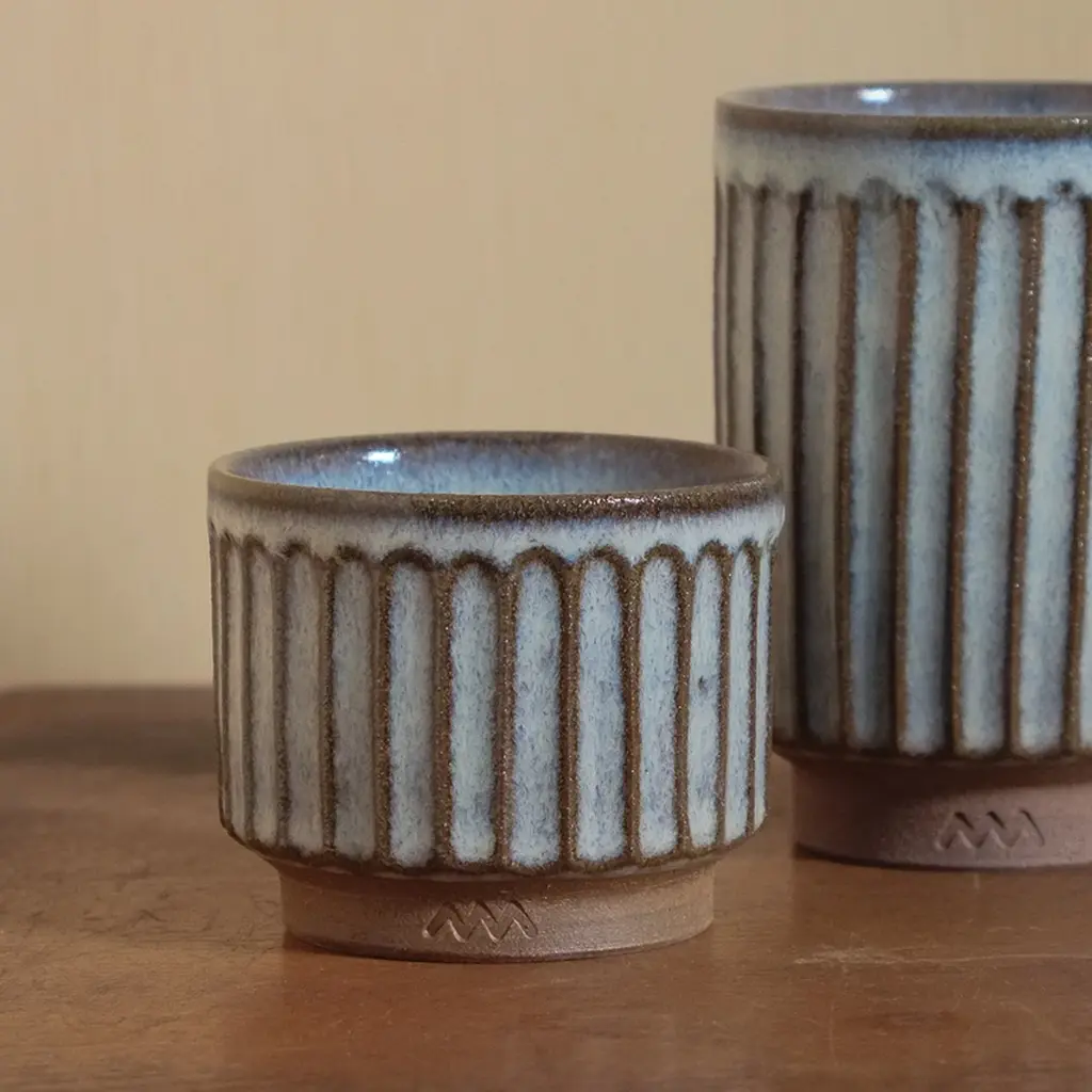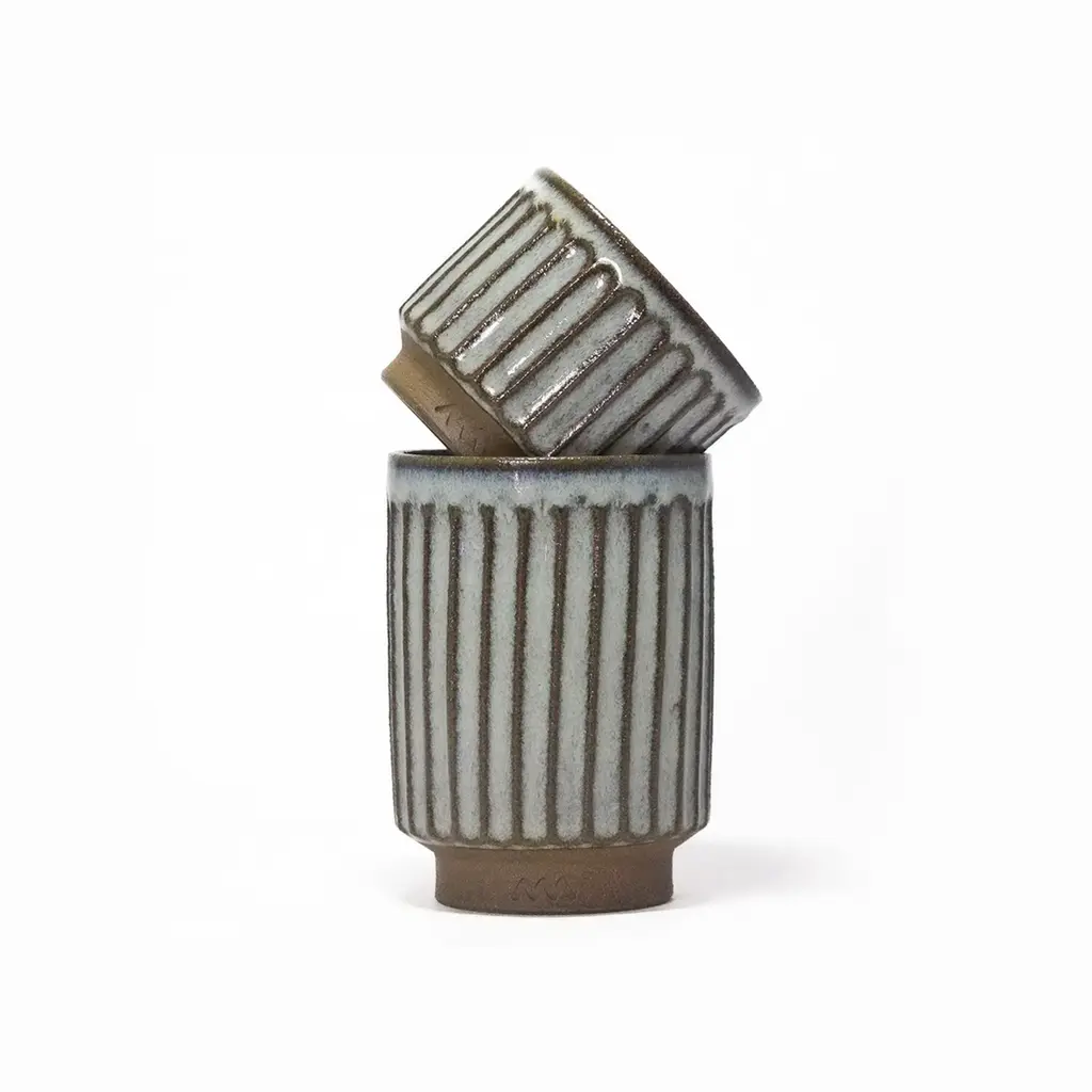 Asemi Co.’s Tamba-yaki cups combine timeless design with the deep-rooted tradition of Japanese craftsmanship. Each cup is meticulously handcrafted using the “shinogi” technique, which imparts a distinct texture and character to every piece. The glaze used is made from 100% natural materials, emphasizing the brand’s commitment to sustainability and authenticity. Available in two sizes, Asemi Co. teacups are designed with stackability in mind. This practical feature is made possible by their consistent shape, which remains true across different types of pottery and production locations, even when the materials and origins vary.