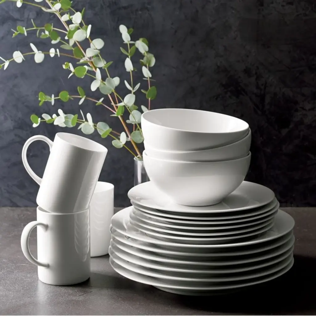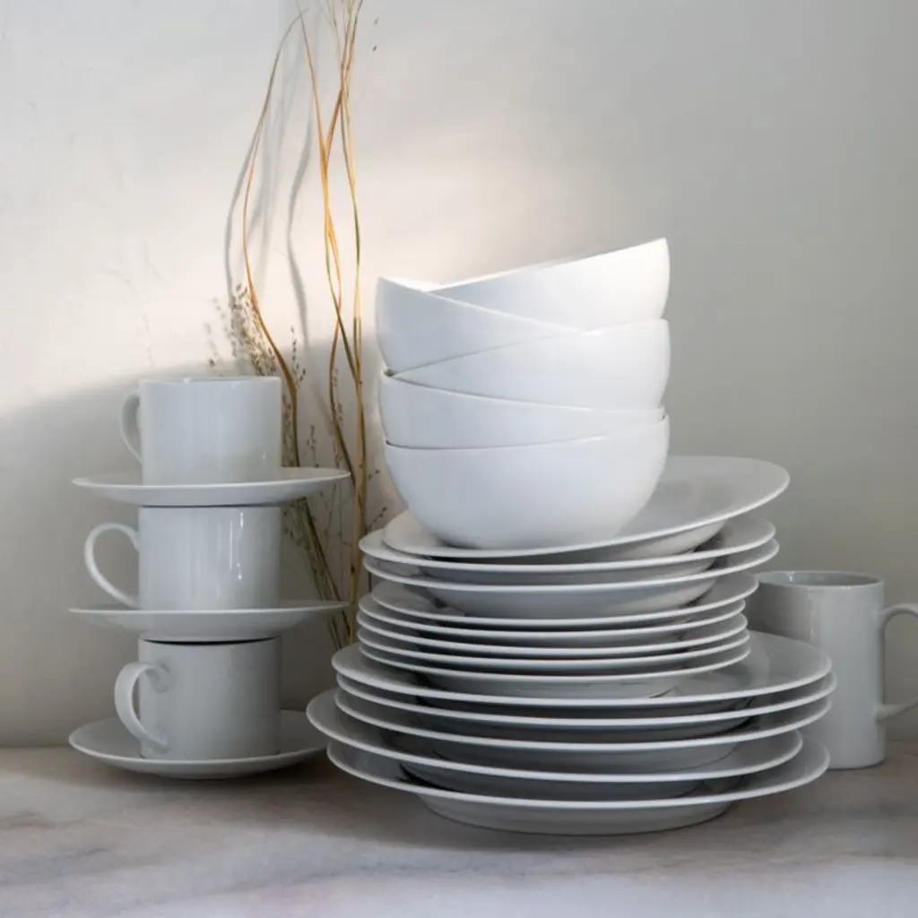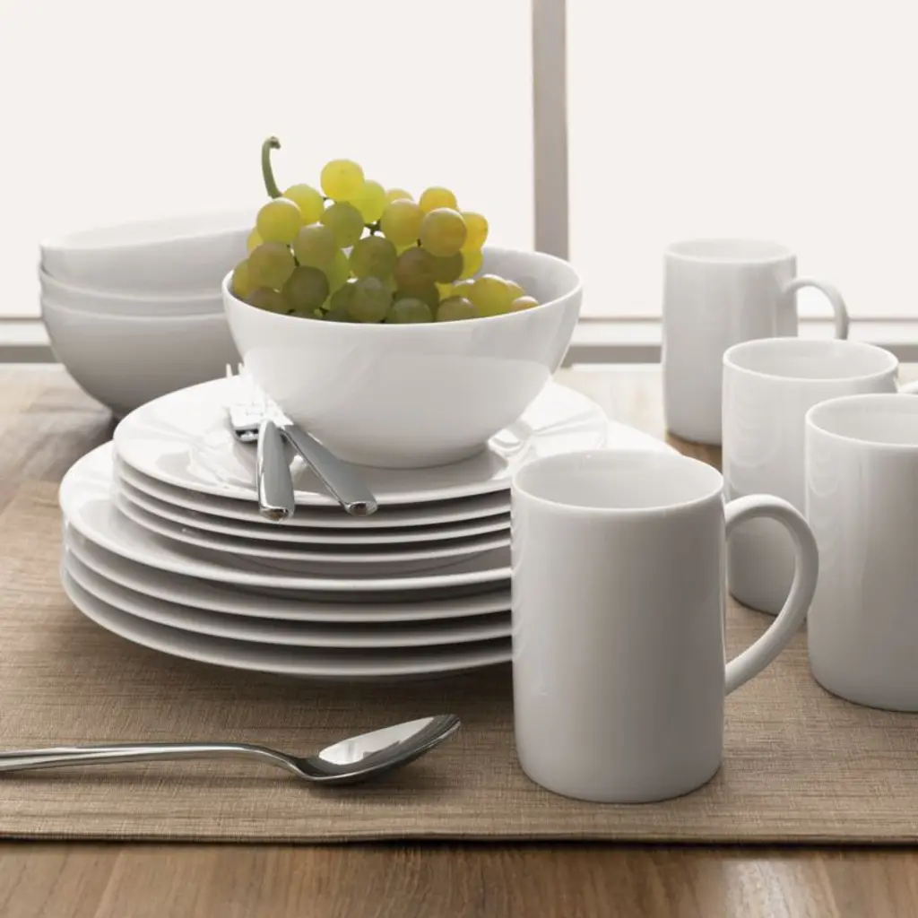 Our Aspen dinnerware is an overture of grace and simplicity. Dressing up or down with ease, its elegant appearance belies its everyday durability. Trim, crisp lines in bright white porcelain; extensive array of pieces to choose from. Easy care.