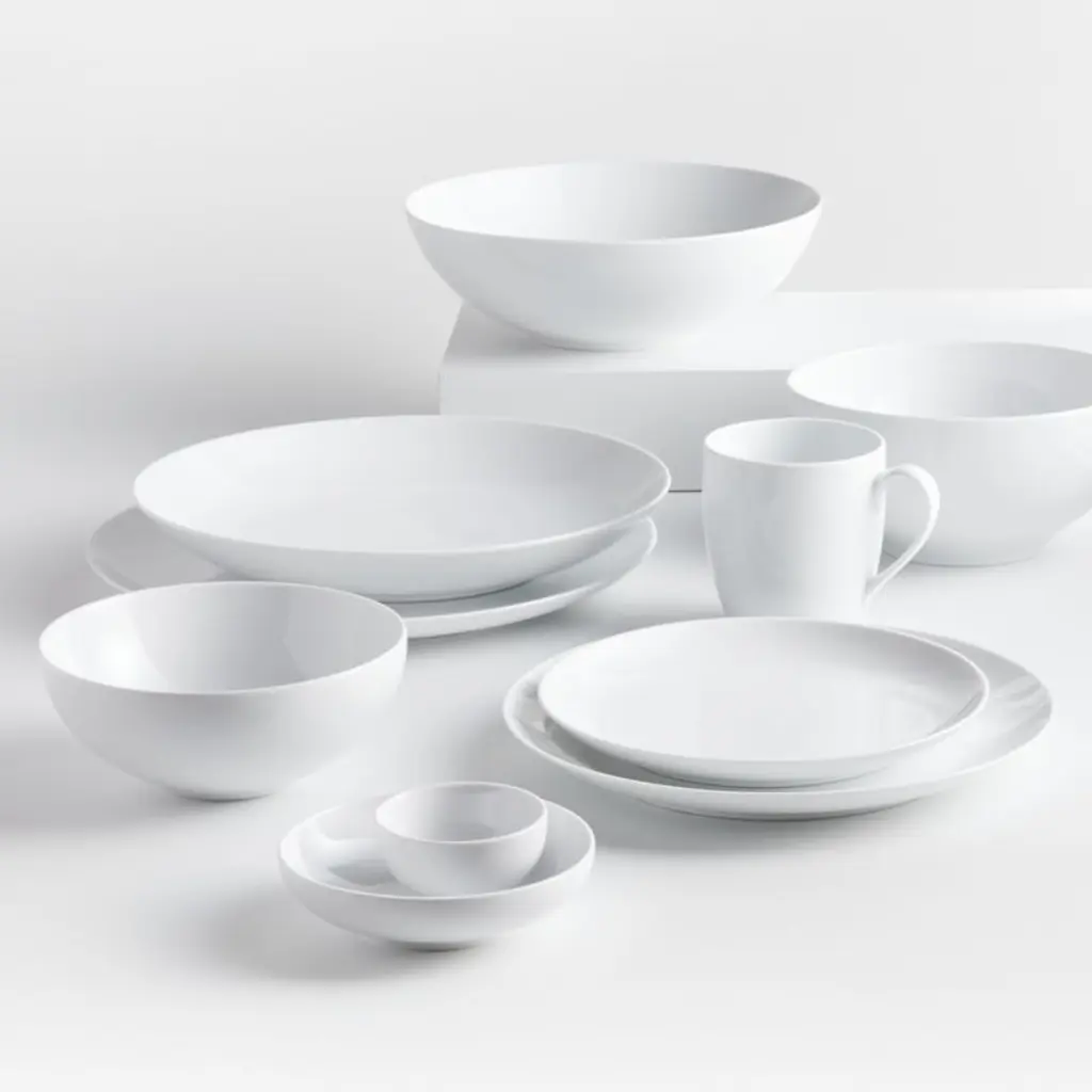 Crisp white oversized coupe shapes in durable porcelain go casual for everyday, or sophisticated for formal dinners. Microwave- and oven-safe, our sturdy yet elegant salad plate is also dishwasher-safe for quick cleanup after weekday meals, cocktail parties and festive family gatherings. To complete your table, add our Aspen white dinner plates, bowls, mugs and serving pieces, all Crate and Barrel exclusives.