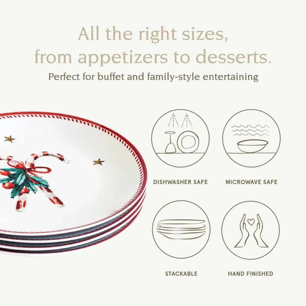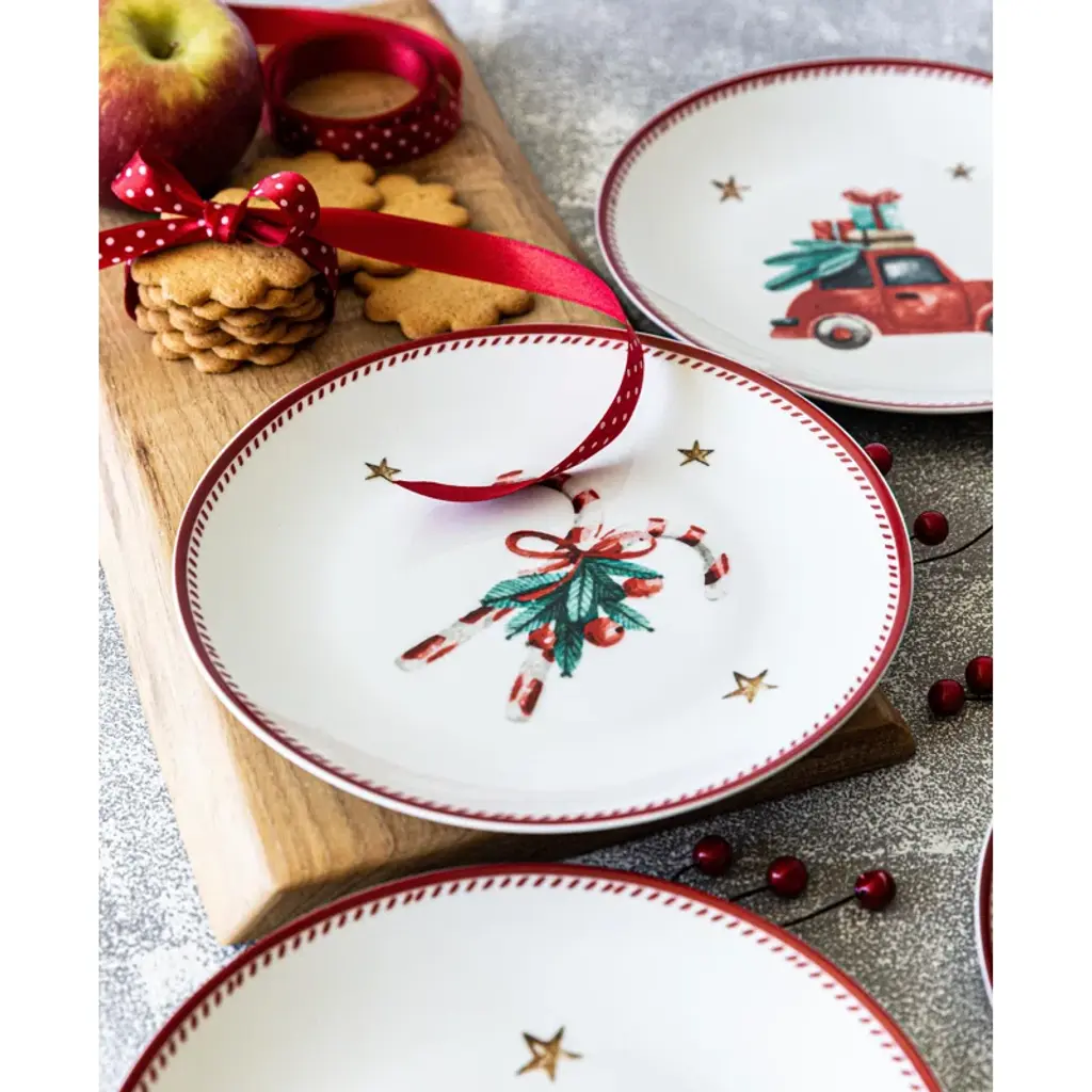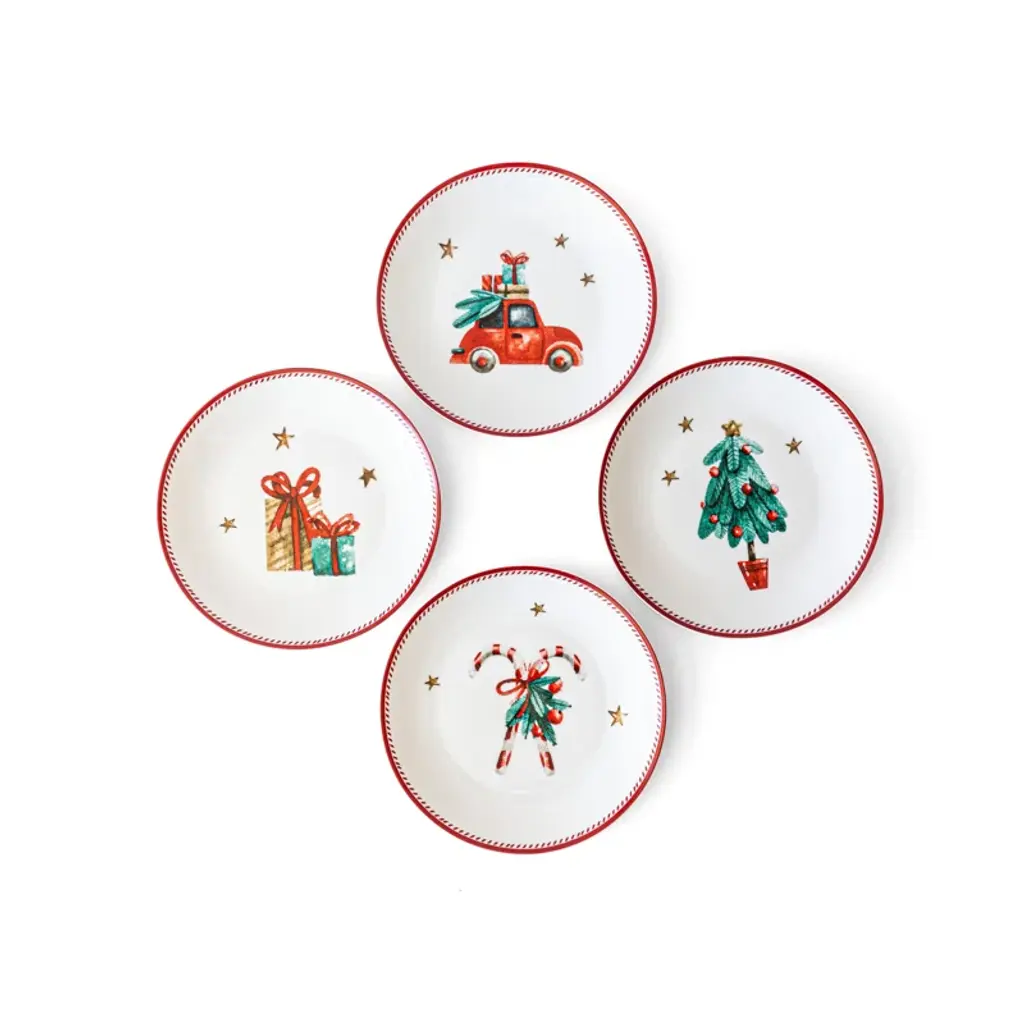 Sprinkle some holiday magic on your table with our set of 4 Assorted Holiday Plates! 🎄🍽️ Crafted from porcelain, these Christmas plates are adorned with delightful holiday items like Christmas trees and candy canes. They're the perfect size for serving up your festive appetizers, salads, and sweet treats. Dress up your holiday table with these charming Christmas Plates. They add a touch of seasonal cheer to every meal! 🎅🍬Get your set today and let the holiday celebrations begin! 🌟🎁