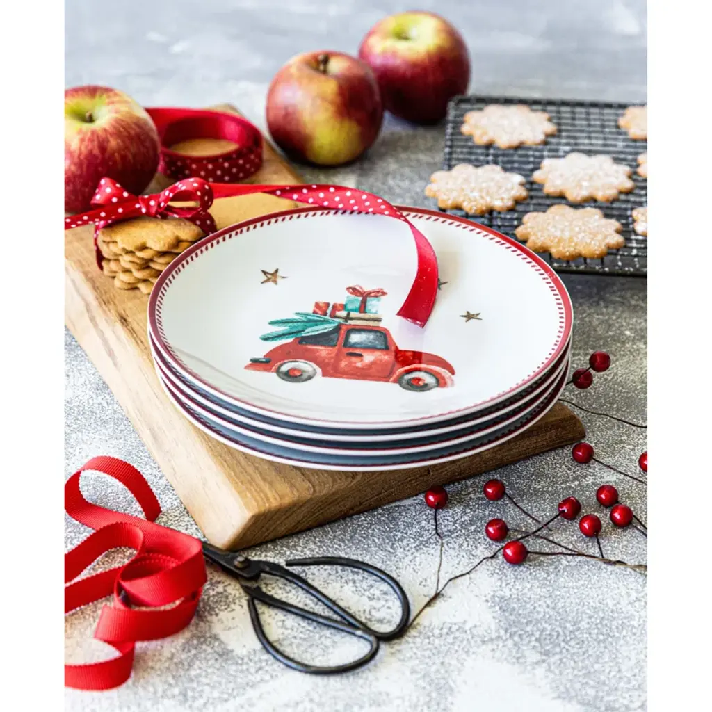 Assorted Holiday Plates - Tree, Car, Candy Cane, Presents (Set Of 4)