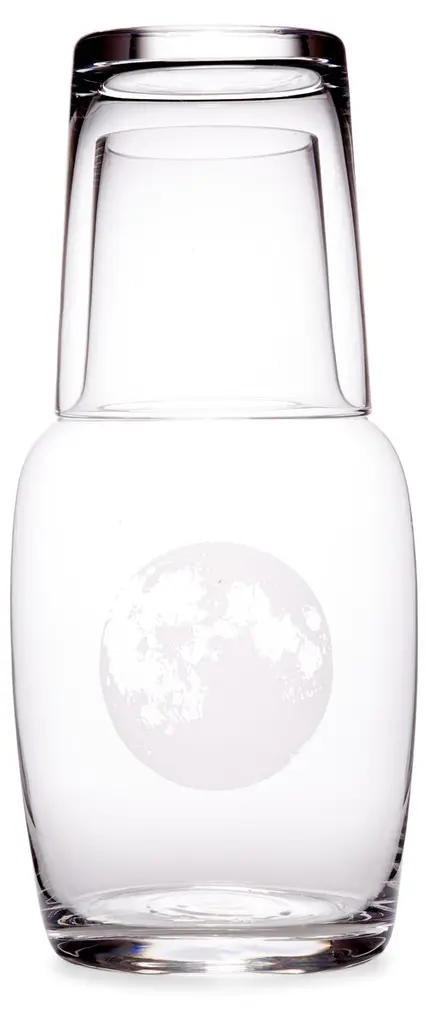 Exclusive to One Kings Lane: This two-piece set is perfect for the desk or bedside table, with a 32-ounce carafe and a glass that doubles as the lid. Each carafe is sand-etched with a stunning full-moon design.