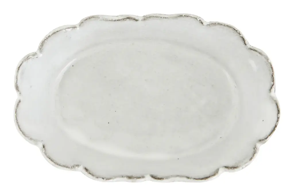 With their pretty silhouettes and charming scalloped edges, the Colbert Dishes bring vintage beauty wherever they go. Inspired by 19th century pottery designs, these delicate dishes come to us from renowned ceramicist Astier de Villatte’s Paris workshop, housed in what was once the atelier of Napoleon’s own silversmith. There, each one was handmade from black terracotta clay following old-school techniques passed down for generations and finished with the brand’s signature milky white glaze. The perfect addition to any tabletop collection, we especially love our Colbert Dishes mixed in with other pieces from our Astier de Villatte ceramics collection for a delightful eclectic tablescape. •black terracotta clay •white glaze •astier de villatte •handmade in paris •each is unique Dimensions •deep dish: 4"W x 2.5"D x 1"H •platter: 9.5"W x 5"D x 1.75"H •long platter: 16"W x 8.25"D x 1.5"H Care Instructions•handwash only •not microwave safe