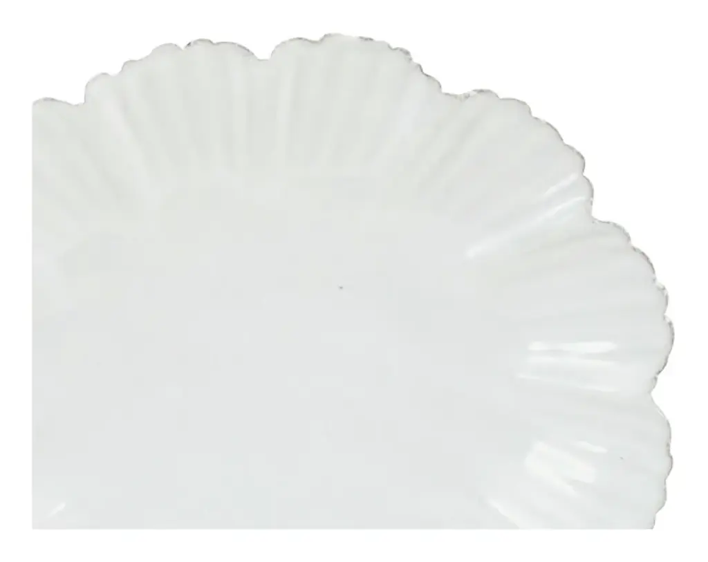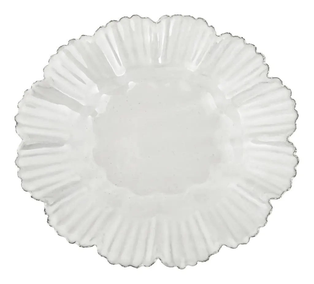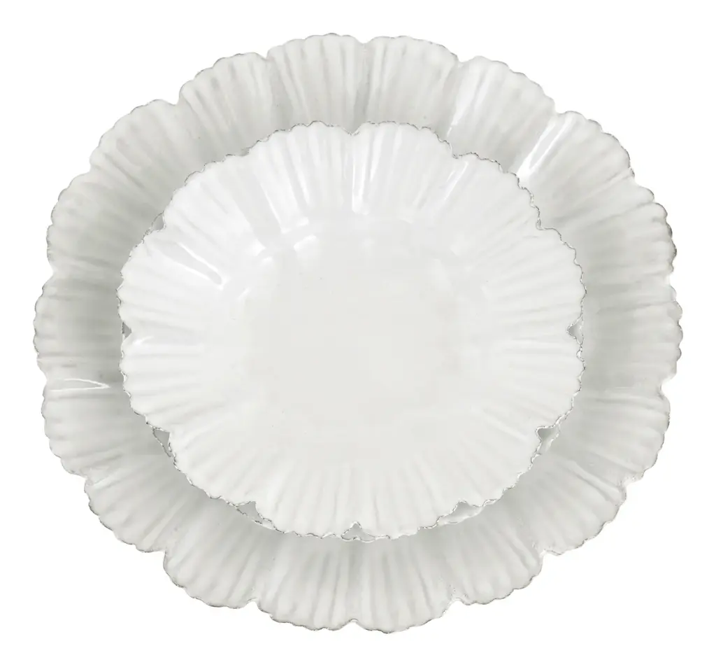 Our pretty Astier de Villatte Drape Dishes are sure to bring a touch of vintage charm to any tabletop. Inspired by 19th-century pottery designs, these delicate pieces come to us from renowned ceramicist Astier de Villatte’s Paris workshop. There, each one was handcrafted from black terracotta clay following old-school methods that have been passed down for generations and finished with the brand’s signature milky white glaze. We love the Small and Large plates for dishing up small bites and desserts at dinner, while the Soup Plate is perfect for serving up soups, cereals or scoops of ice cream. With their scalloped edges and flower-like silhouettes, they could also double as catchalls for trinkets on a nightstand or dressing table. Mix them in with other pieces from our Astier de Villatte Ceramics Collection for a delightfully eclectic tablescape. •black terracotta clay•white glaze•astier de villatte•handmade in paris•each is unique Dimensions •soup plate: 7.25"W x 6.5"D x 1.5"H•small plate: 7.25"W x 6.25"D x .75"H•large plate: 10.5"W x 9.5"D x .75"H Care Instructions•handwash only •not microwave safe