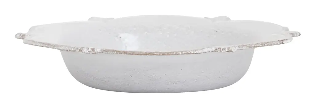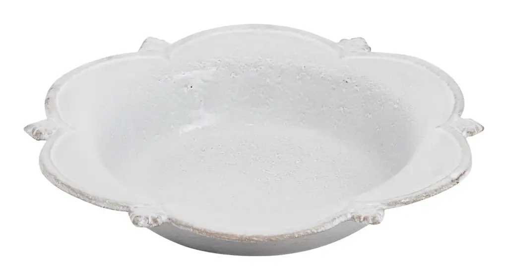 How pretty is our Astier de Villatte Isolde Dish? Drawing on 19th-century pottery designs, this chic little dish comes to us from Astier’s historic Paris workshop, where it was crafted from black terracotta clay sourced from the Paris Basin and a handcarved plaster mold — a slow-paced, traditional process straight from the Middle Ages that gives each piece its own unique charm. Once formed into shape, it’s coated with the brand’s signature milky white glaze, which lets hints of that natural clay color peek through for a perfectly imperfect feel. With its classic, hexafoil-shaped silhouette, petite floral details and fresh, bright hue, our Isolde Dish is such a lovely finishing touch for any space, whether you use it for serving sauces and condiments at an elegant dinner party; for plating nuts or olives on a sumptuous grazing table; or as a gorgeous catchall dish on a side table or vanity. •black terracotta clay•white glaze•astier de villatte•handmade in paris •each is unique Dimensions: •approximately 6" diameter x 1"H Care:•hand wash only •not microwave safe