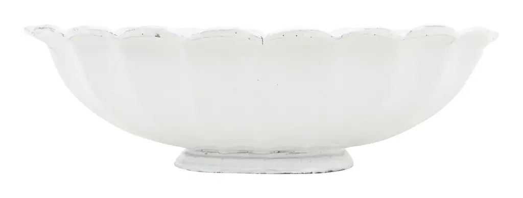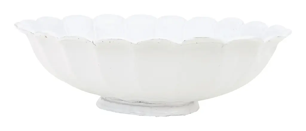 Named for the French for “daisy,” our sweet Marguerite Platter brings a touch of antique elegance to any tabletop. Inspired by 19th century pottery designs, this delicate dish comes to us from Astier de Villatte’s historic Paris workshop. There, it was handcrafted from black terracotta clay following old-school techniques passed down for generations and finished with the brand’s signature milky white glaze. With its scalloped edges and flower-like silhouette, Marguerite makes a lovely addition to any serveware collection. We love it for a small display of fruits on a chic kitchen counter or for serving up sides on an elegant dinner table. •13"W x 10"D x 3.75"H •black terracotta clay•white glaze•astier de villatte•handmade in paris •each is unique