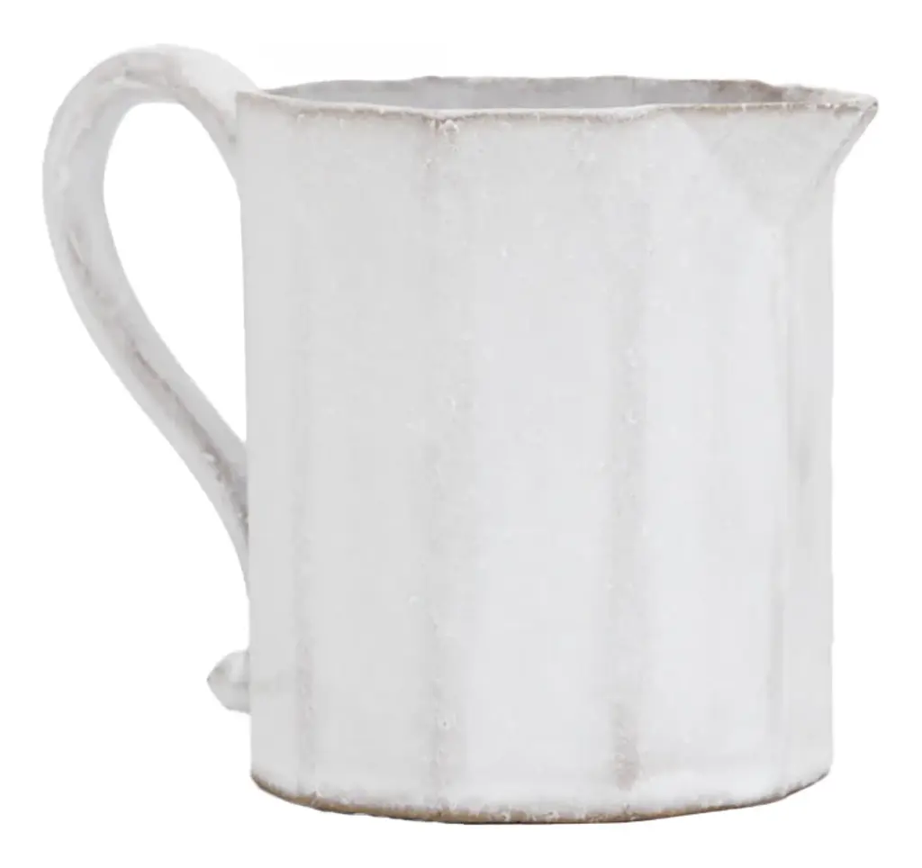 Pour on the vintage charm with our beautiful Astier de Villatte Octave Pitcher. A love letter to Paris of the past, this delicate dish was crafted by skilled artisans in Astier’s historic workshop using black terracotta clay sourced from the Paris Basin and handcarved plaster molds — a slow-paced process dating back to the Middle Ages that gives each piece its own unique character. Once formed into shape, it’s coated with the brand’s signature milky white glaze, which lets bits of that natural clay color peek through, adding to its perfectly imperfect feel. With its simple, faceted silhouette, graceful curving handle and fresh hue, this little vessel makes a pretty addition to any serveware collection, whether you use it as a creamer at the breakfast table; for drizzling a homemade dressing or sauce at an elegant dinner party; or as a vase for an effortless bouquet of blooms. We also love it paired with our matching Octave Teapot, Box and Mug for a très chic tea service. •black terracotta clay •white glaze •astier de villatte•handmade in paris •each is unique Dimensions •approximately 4.25"W x 2.5"D x 2.75"H Care:•hand wash only •not microwave safe