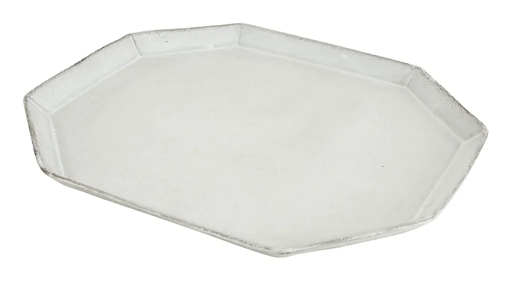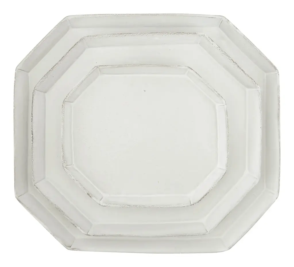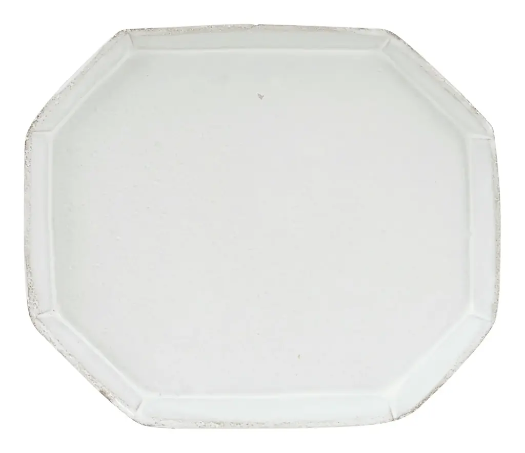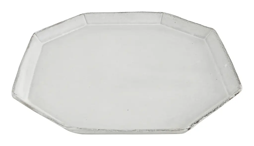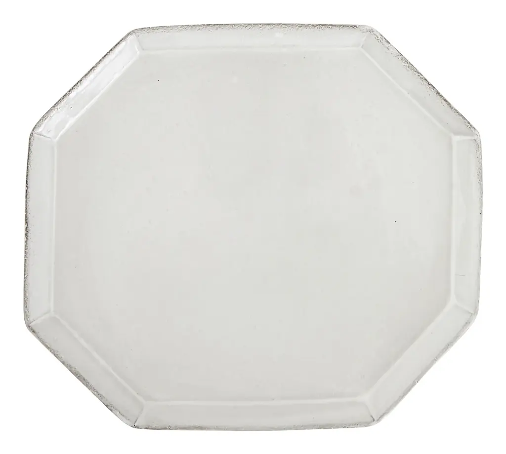 Bring something fresh to the table with our Octave Plates. Inspired by 19th century pottery designs, these delicate dishes come to us from renowned ceramicist Astier de Villatte’s historic Paris workshop, housed in what was once the atelier of Napoleon’s own silversmith. There, each one was handcrafted from black terracotta clay following old-school methods passed down for generations and finished with the brand’s signature milky white glaze. Simple yet chic, their octagonal silhouettes are the perfect backdrop for main courses and appetizer displays alike. Great mixed in with any serveware, we especially love our Octave Plates mixed in with other pieces from our Astier de Villatte ceramics collection for a delightfully eclectic tabletop. •black terracotta clay•white glaze •astier de villatte•handmade in paris •each is unique Dimensions •side plate: 6.75"W x 6"D x .5"H •dinner plate: 9.5"W x 8.5"D x .5"H•large dinner plate: 11"W x 10"D x .5"H