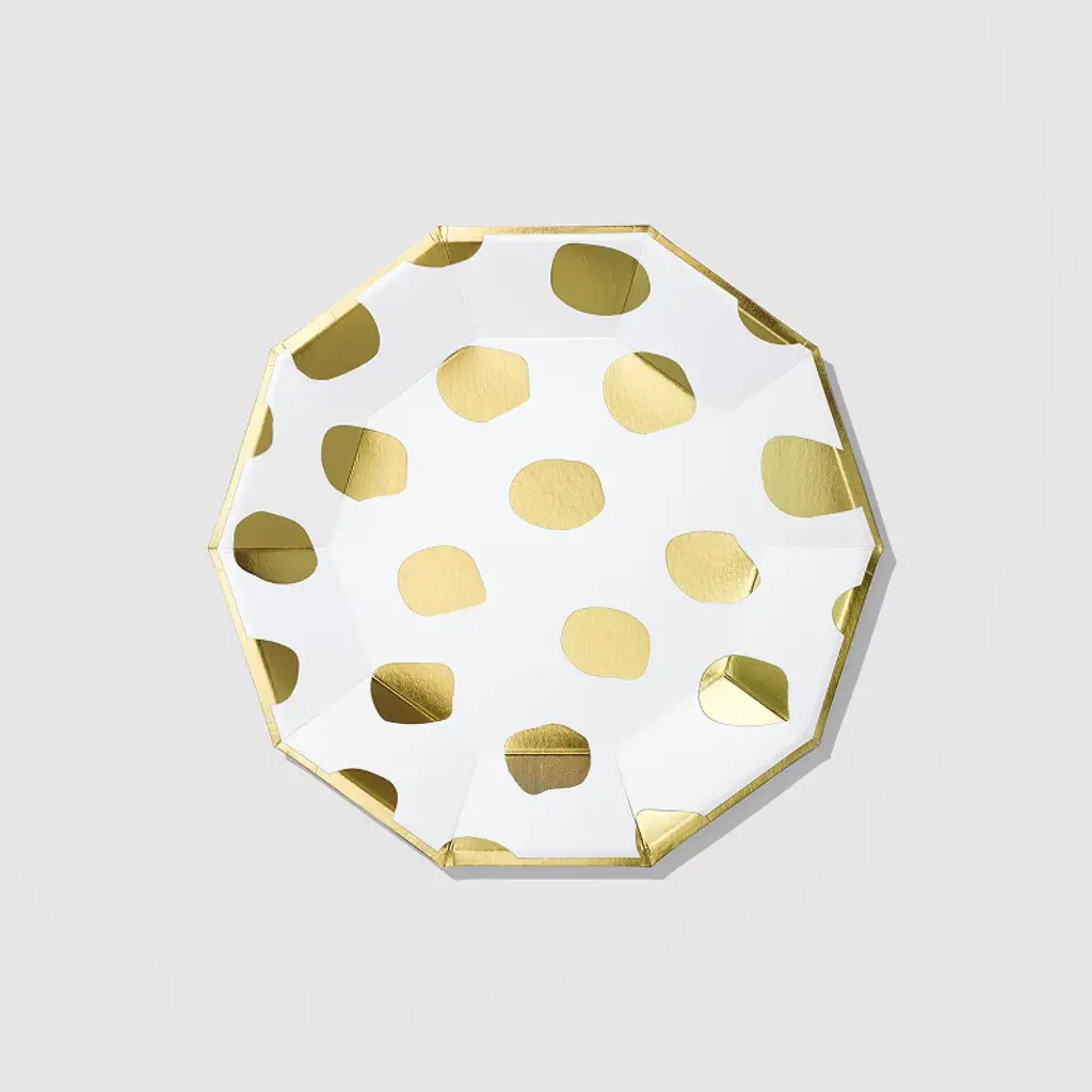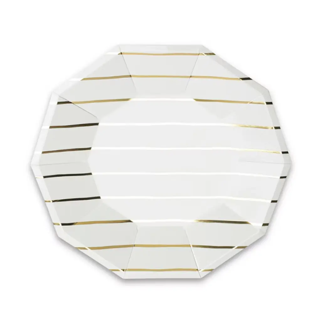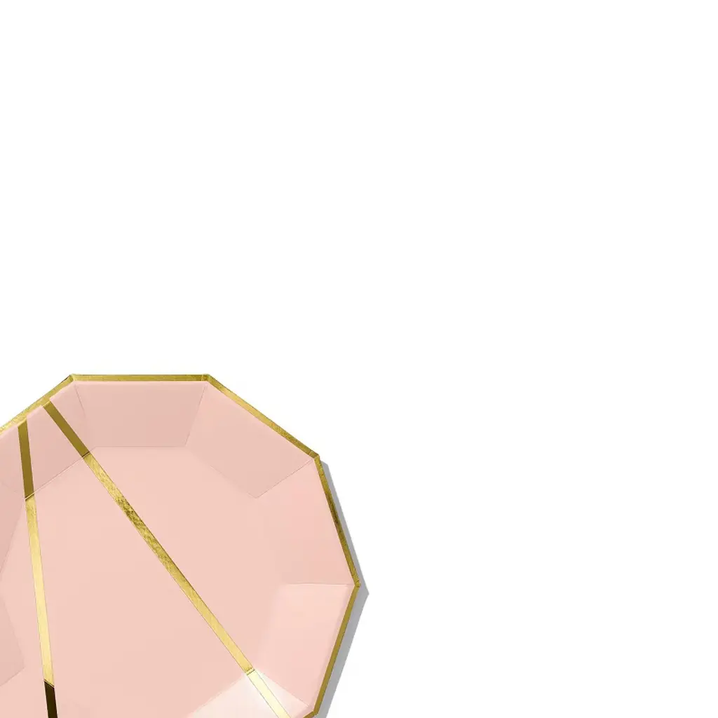 Feminine, refined, and bound to have your guests ooh-ing and aah-ing, these pink plates are cut through with delicate gold lines for a modern, understated elegance. Includes 10 plates. Details 9.25" paper platesPack of 10Recyclable and compostableExtra sturdy - pile on the second serving!