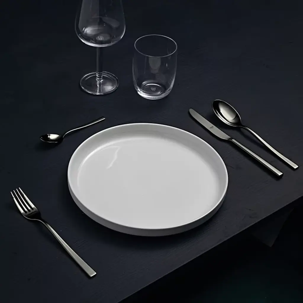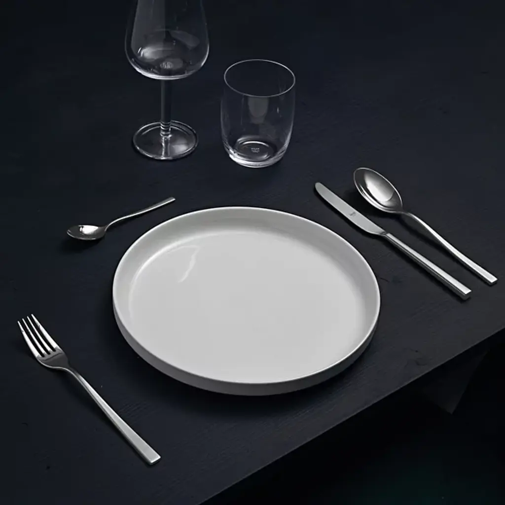 Atena 5-Piece Flatware Place Setting by Mepra offers an exquisite blend of contemporary design with exceptional craftsmanship. Made from high-quality 18/10 stainless steel, this luxury cutlery set is designed in Italy and brings elegance to any dining room. Its dishwasher-safe feature ensures easy cleaning, keeping the set looking pristine. The double serration on the knives provides durable sharpness, perfect for everyday use or special occasions. Elevate your dining experience with the Atena Cutlery Set, a perfect addition to your collection.