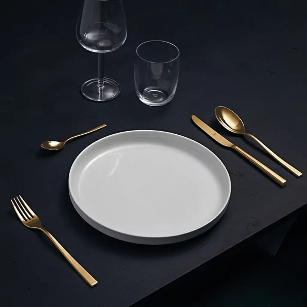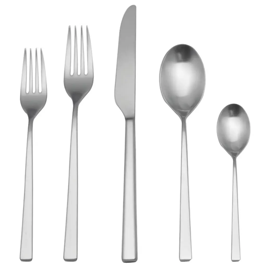 Atena 5-Piece Flatware Place Setting by Mepra offers an exquisite blend of contemporary design with exceptional craftsmanship. Made from high-quality 18/10 stainless steel, this luxury cutlery set is designed in Italy and brings elegance to any dining room. Its dishwasher-safe feature ensures easy cleaning, keeping the set looking pristine. The double serration on the knives provides durable sharpness, perfect for everyday use or special occasions. Elevate your dining experience with the Atena Cutlery Set, a perfect addition to your collection.