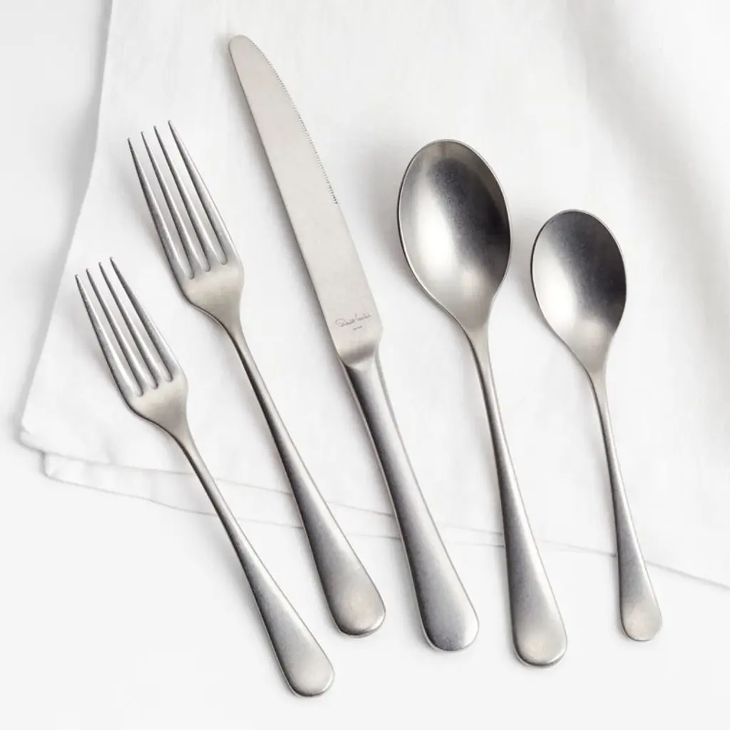 Atena Flatware is made of the highest quality 18/10 steel, 4 mm thick, very durable, and incredibly ergonomic for dinner parties and everyday use. Knives have double serration for durable sharpness. Enhance your dining experience with this beautiful Italian flatware! Dishwasher and food safe. Created in 1947, Mepra is a family-owned and operated company with a worldwide presence in flatware, cookware, and stainless-steel products. Today, Mepra flatware and kitchenware appear on the tables of the most prestigious hotels, award-winning restaurants, and artisanal-centered homes. Bring the magic of three generations worth of Italian traditions, designs, and lifestyles into your kitchen and dining room today. 20 Piece Cutlery Set includes (4) Dinner Forks, (4) Dinner Knives, (4) Salad Forks, (4) Soup Spoons, and (4) Coffee/Teaspoons