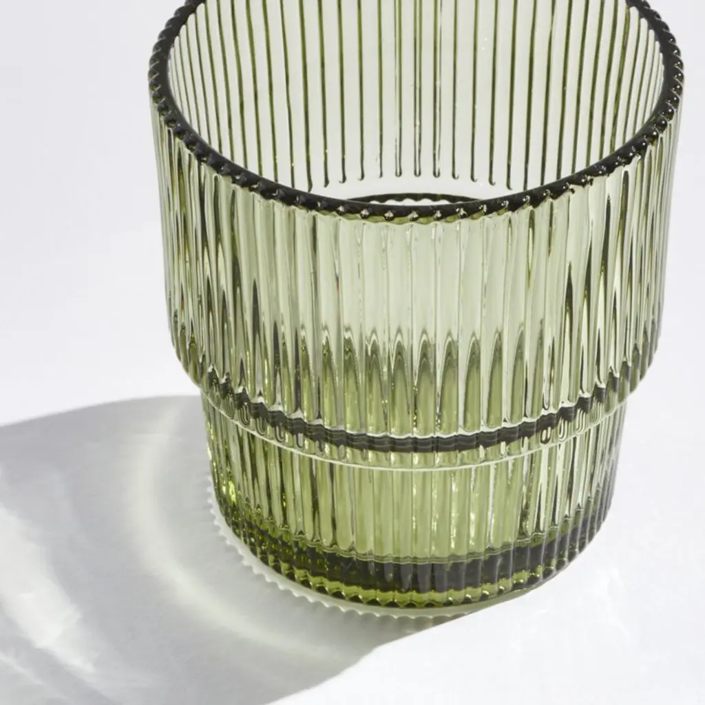 Atwell 11-Oz. Moss Green Stackable Ribbed Double Old-Fashioned Glass