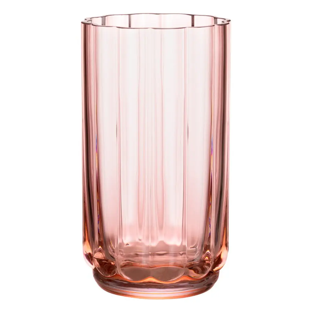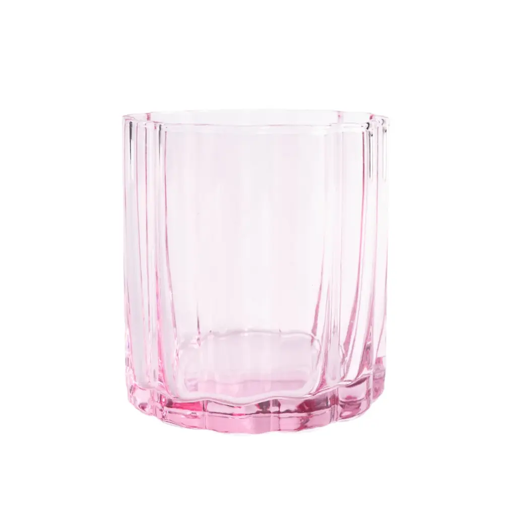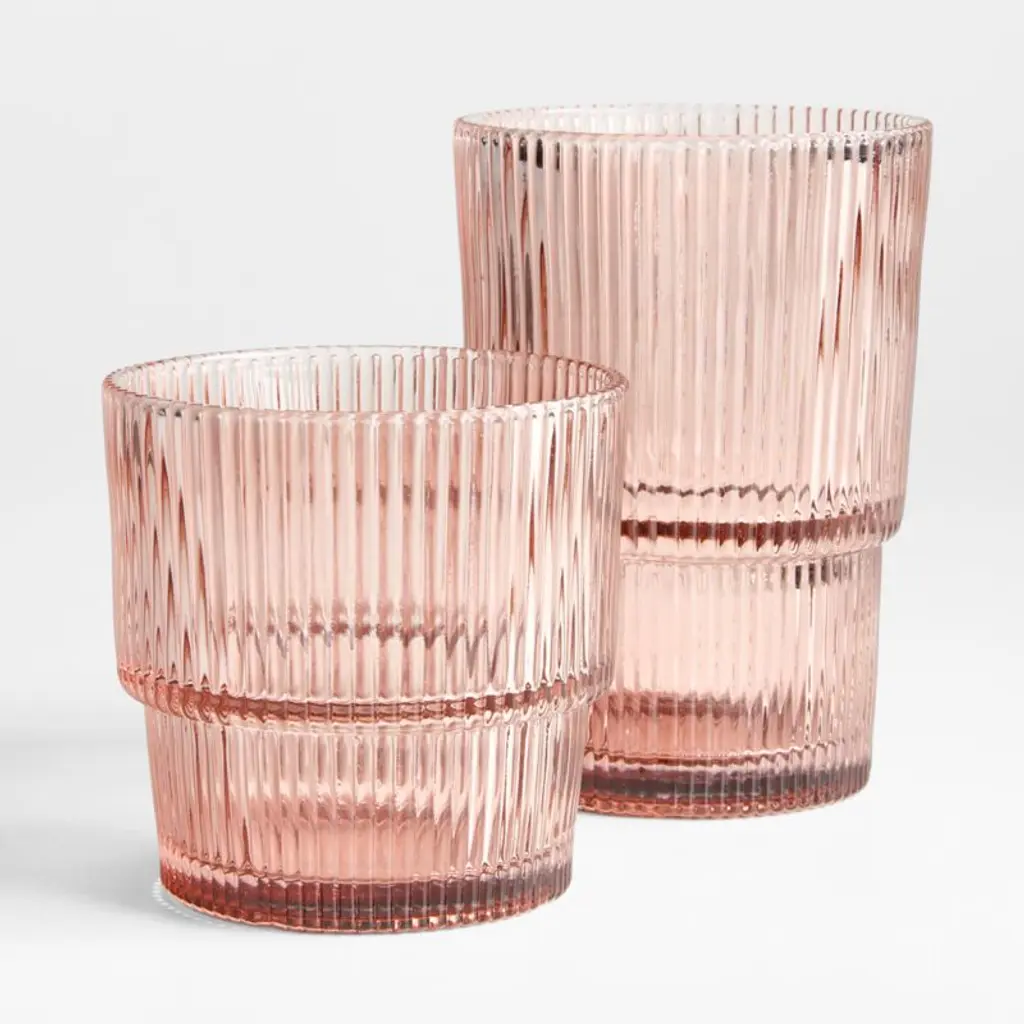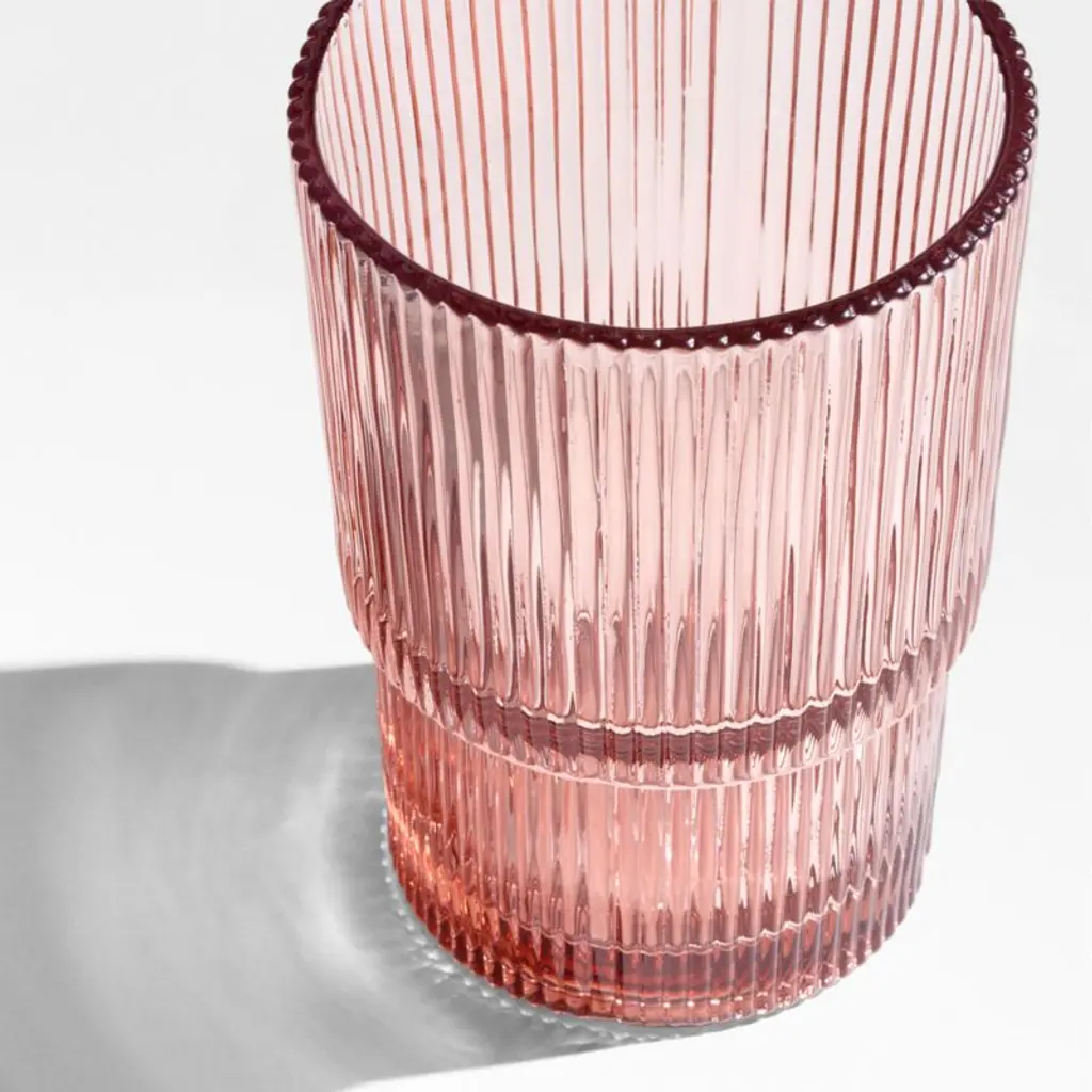 Sparkling tiers of ribbed glass shape a double old-fashioned glass equally suited to casual sips and formal toasts. Eye-catching in translucent pink, the stackable rocks glass features a ridged surface to catch the light as well as provide a sturdy handhold. The spring-inspired pink hue mixes and matches beautifully with the other pieces in our exclusive Atwell drinkware collection.