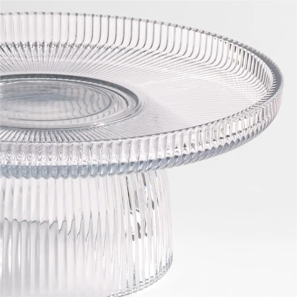 Expanding upon our customer-favorite glassware collection, Atwell brings its signature ribbing to clear glass entertaining pieces that add sparkle to any occasion. Countless ridges catch the light in the cake stand's gorgeous pedestal base, designed to make a scintillating display of cakes, pies or other desserts. A glass dome adds plain contrast to the ribbed base while keeping baked goods fresh and intact.