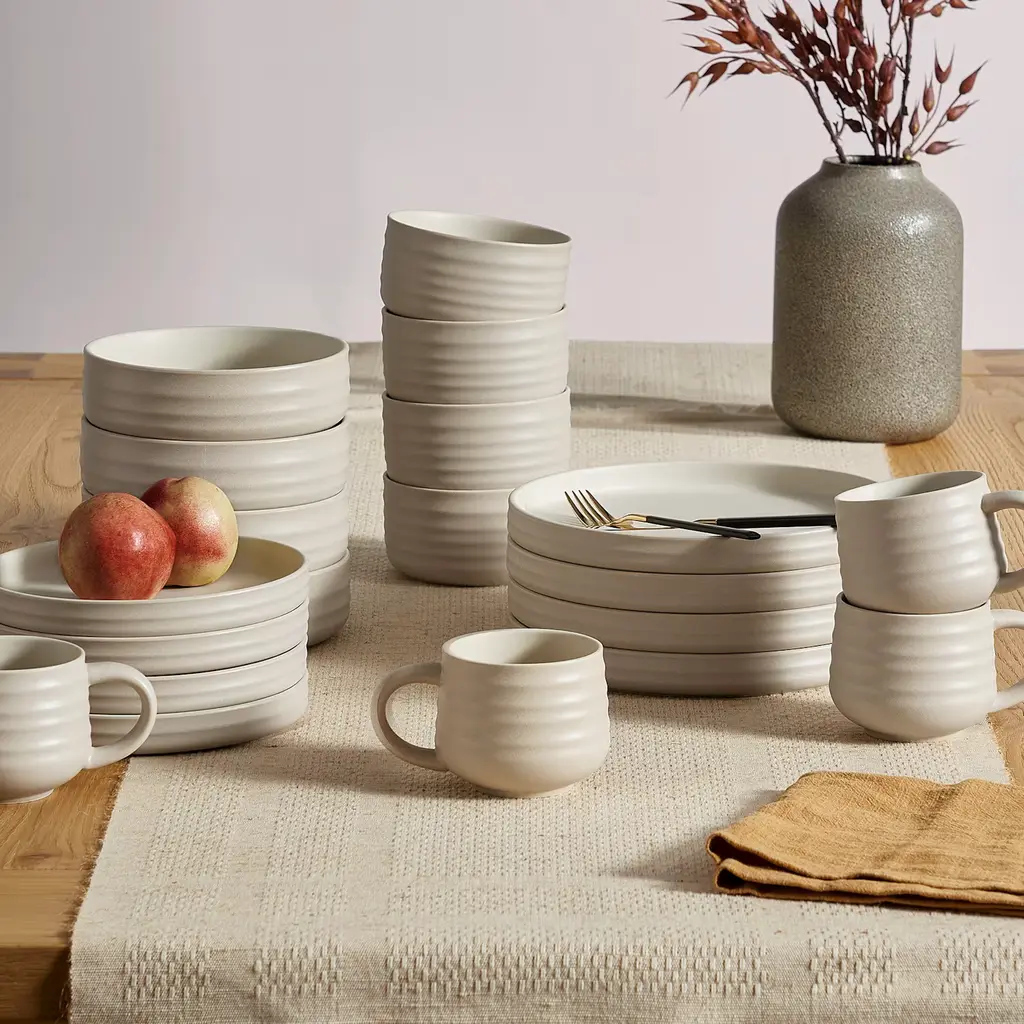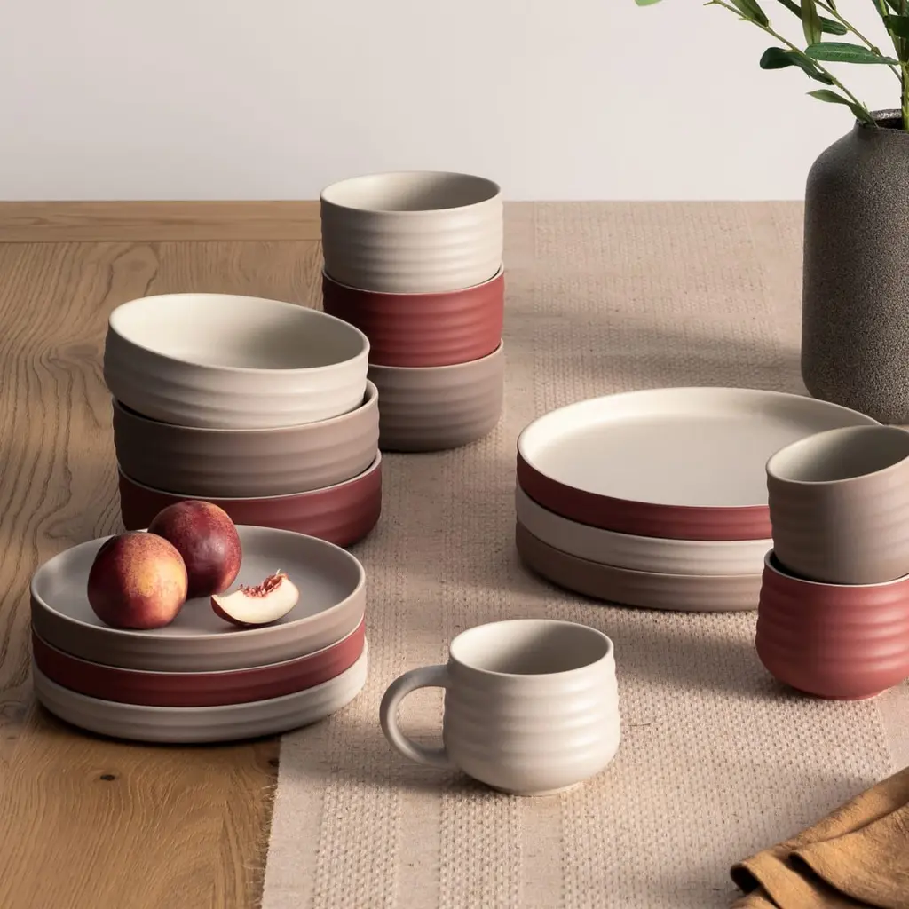 With a clay-like finish and inviting earthy tones, Audrey's handcrafted rim adds further definition and character to this stoneware collection.