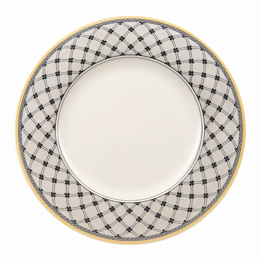 A classic copperplate design named for the home of Villeroy & Boch, featuring an array of plates that can be combined for dramatic effect. Dinner plate, salad plate, bread & butter plate, rim soup bowl, jumbo cup, mug, and after dinner cup.
