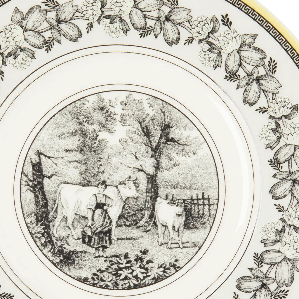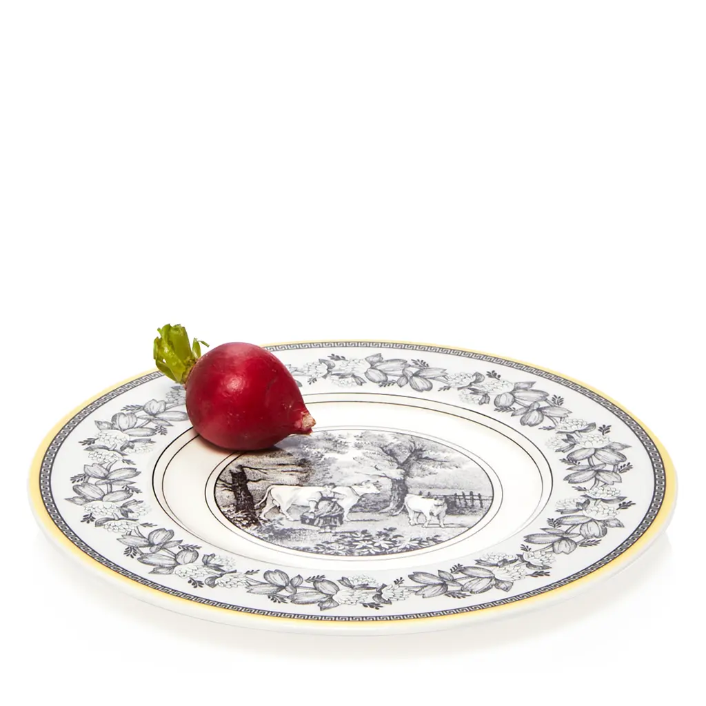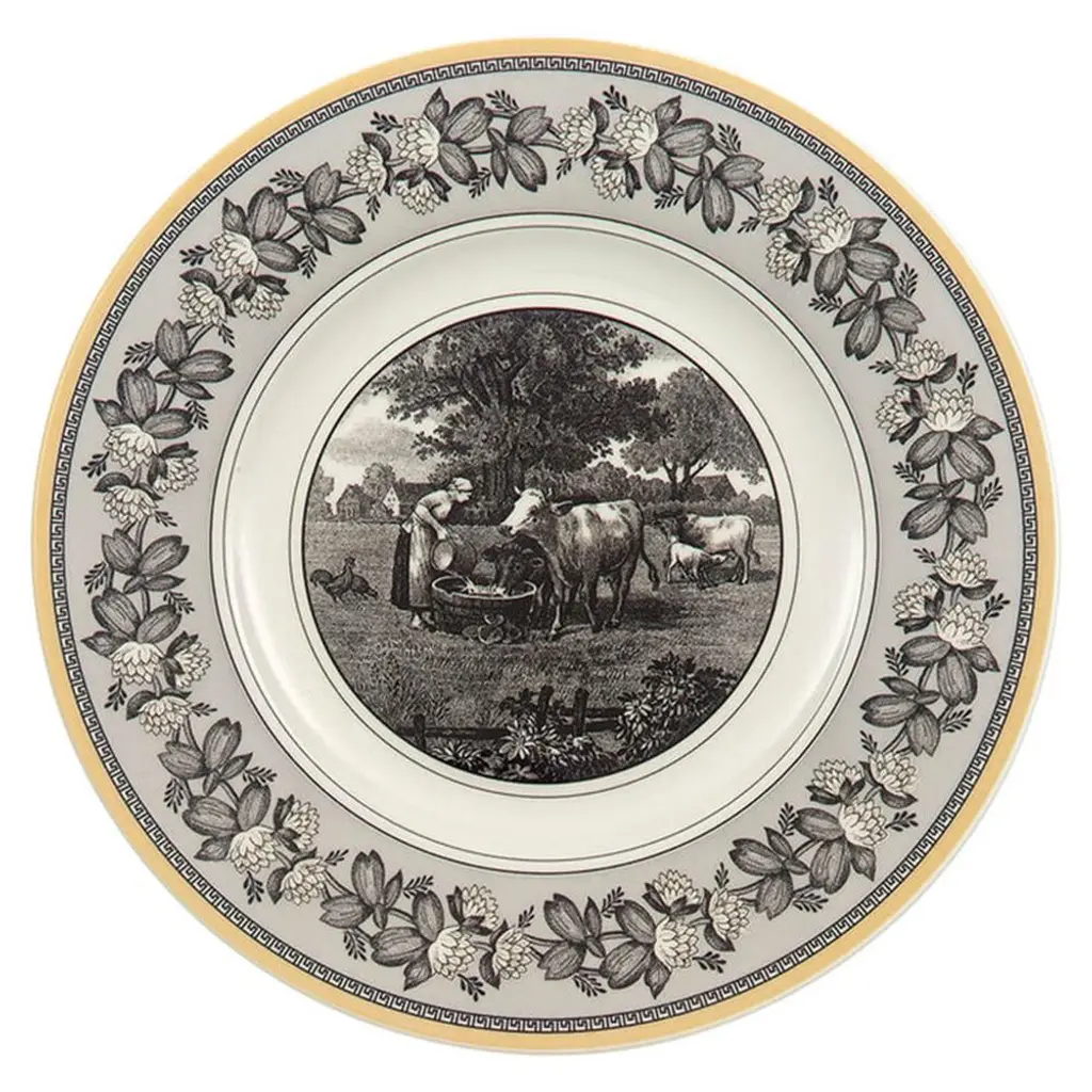A classic copperplate design named for the home of Villeroy & Boch, featuring an array of plates that can be combined for dramatic effect. Dinner plate, salad plate, bread & butter plate, rim soup bowl, jumbo cup, mug, and after dinner cup.