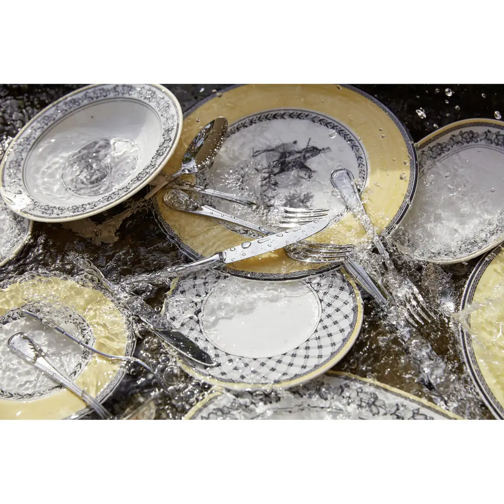 A classic copperplate design named for the home of Villeroy & Boch, featuring an array of plates that can be combined for dramatic effect. Dinner plate, salad plate, bread & butter plate, rim soup bowl, jumbo cup, mug, and after dinner cup available.