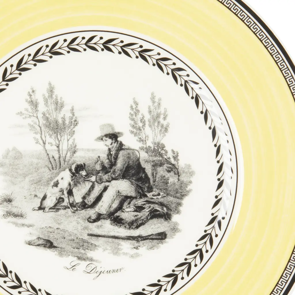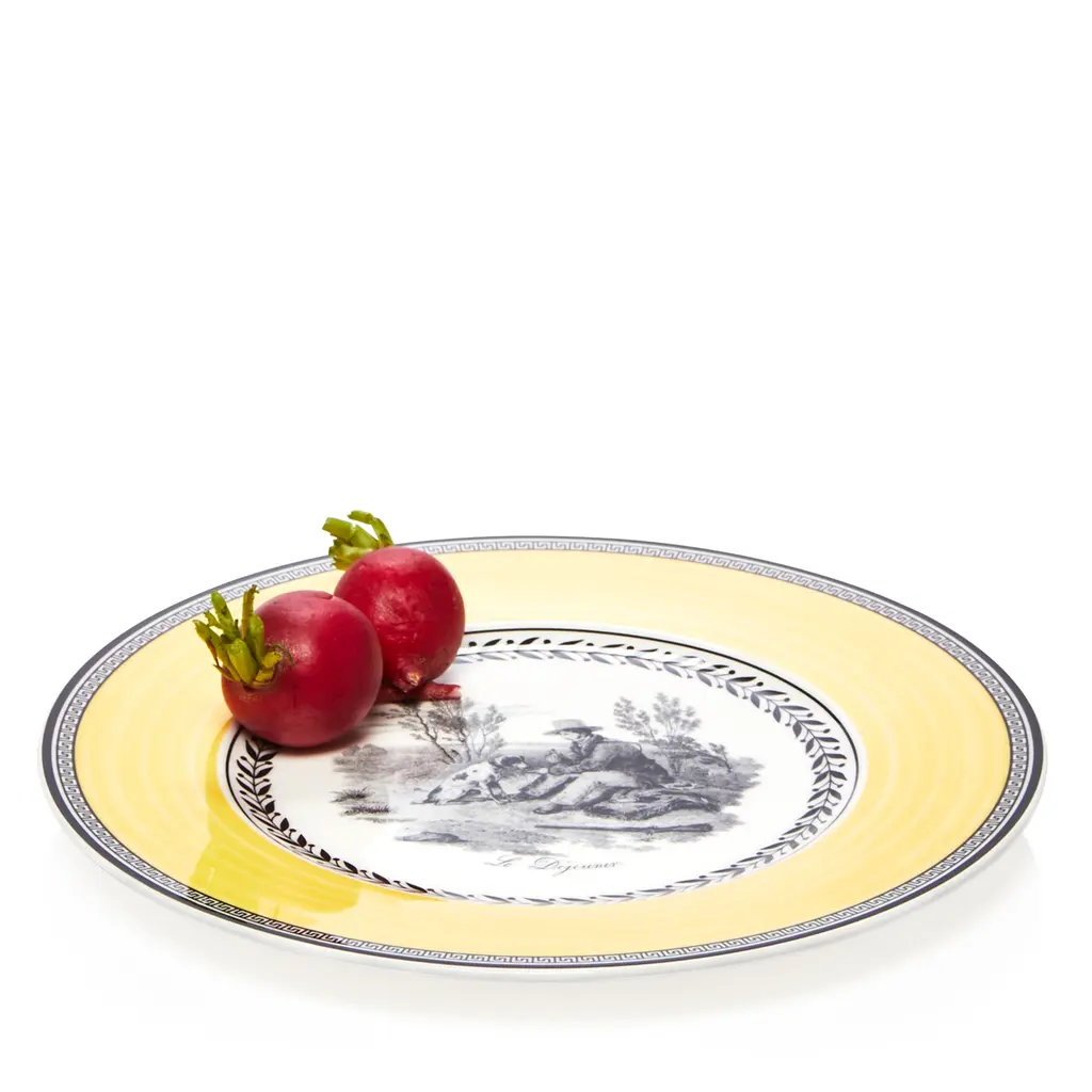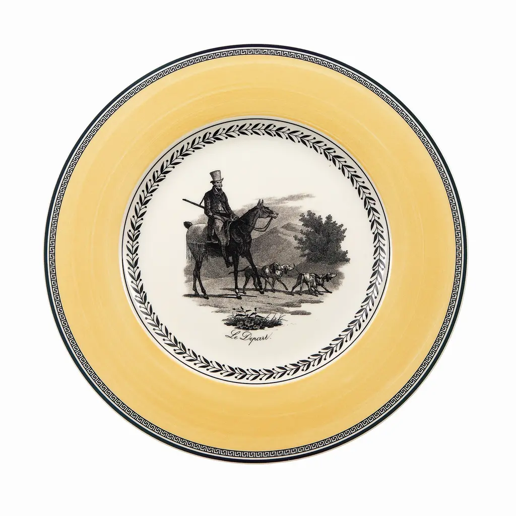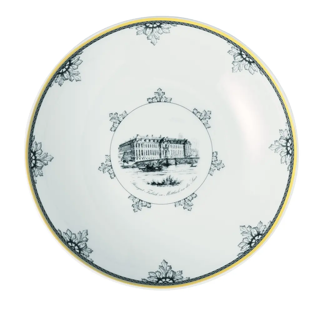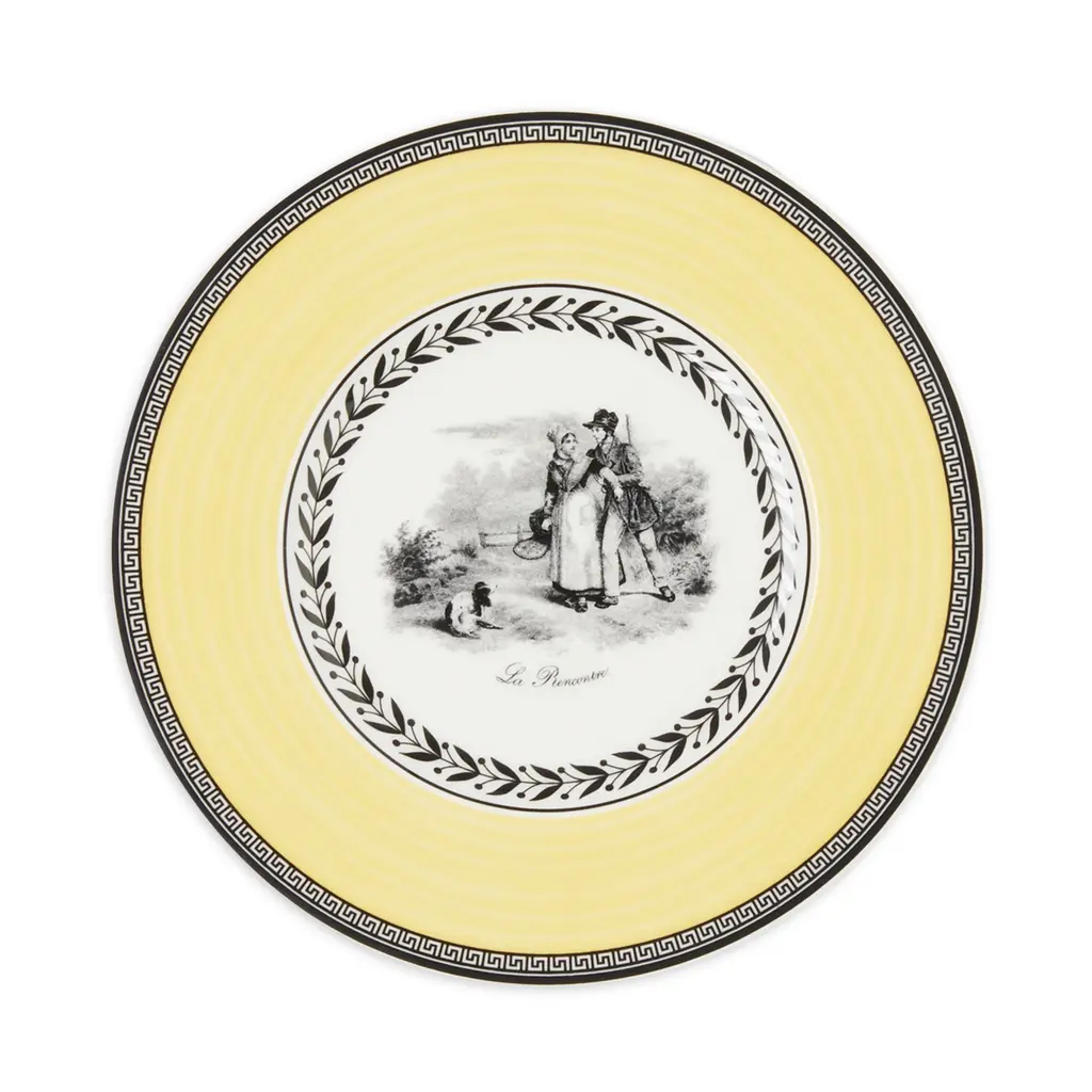 A classic copperplate design named for the home of Villeroy & Boch, featuring an array of plates that can be combined for dramatic effect. Dinner plate, salad plate, bread & butter plate, rim soup bowl, jumbo cup, mug, and after dinner cup available.