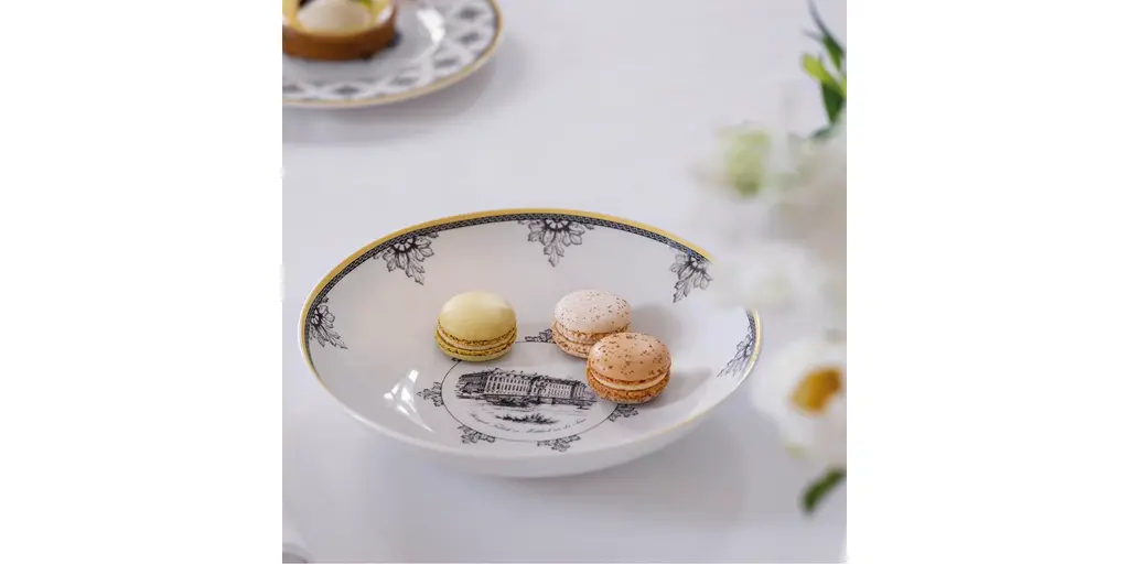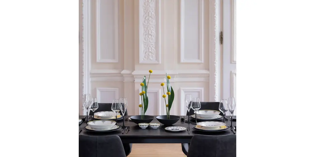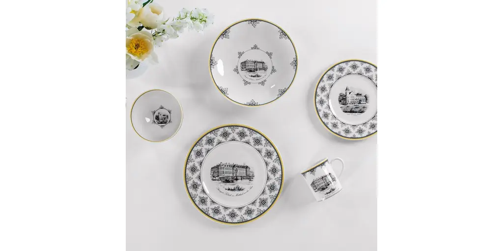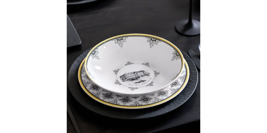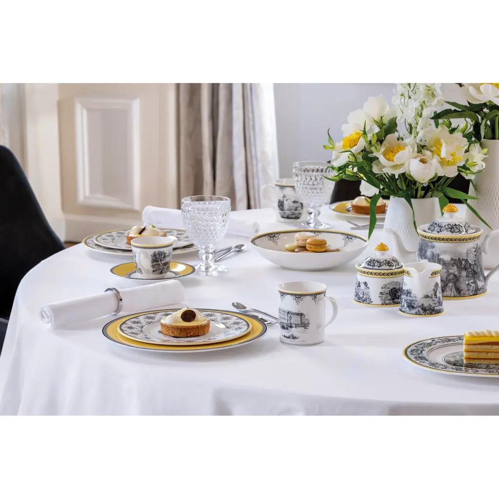 Villeroy & Boch celebrates the 25th anniversary of the Audun collection with this limited edition Audun Maison design. Featuring a unique yellow and black color palette on premium white porcelain, each piece is decorated with scenes from the company's historic location in Mettlach, Germany.