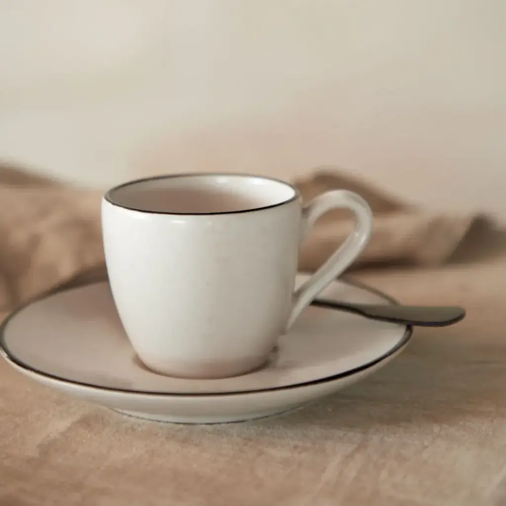Augusta Natural-Black Coffee Cup And Saucer 3.5'' X 2.5'' H2.25'' | 3 Oz. D5.25''