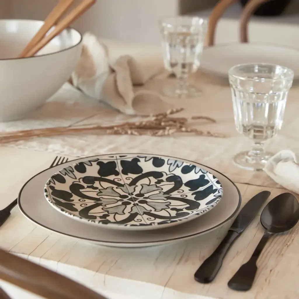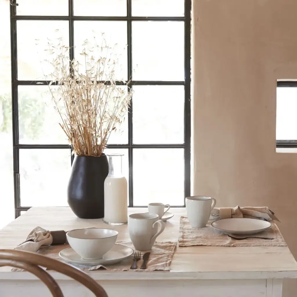 Matte-beige surface with bold rims and patterns Contemporary and versatile, Augusta takes on a natural feeling, balancing a matte-beige surface with bold rims and patterns. The collection highlights a selection of neutral dinnerware pieces with a black rim which can be combined with the patterned designs to add an eclectic touch to each table setting. Whether there is a celebration or a simple gathering, Augusta provides a table suitable for all tastes. Named after a small fishing village famous for its colorfully painted wooden houses, Costa Nova combines ancient European craft traditions, elegant design and quality to create fine stoneware pieces. Using the best natural resources in Portugal, Costa Nova pieces are known for their color and exceptional durability.