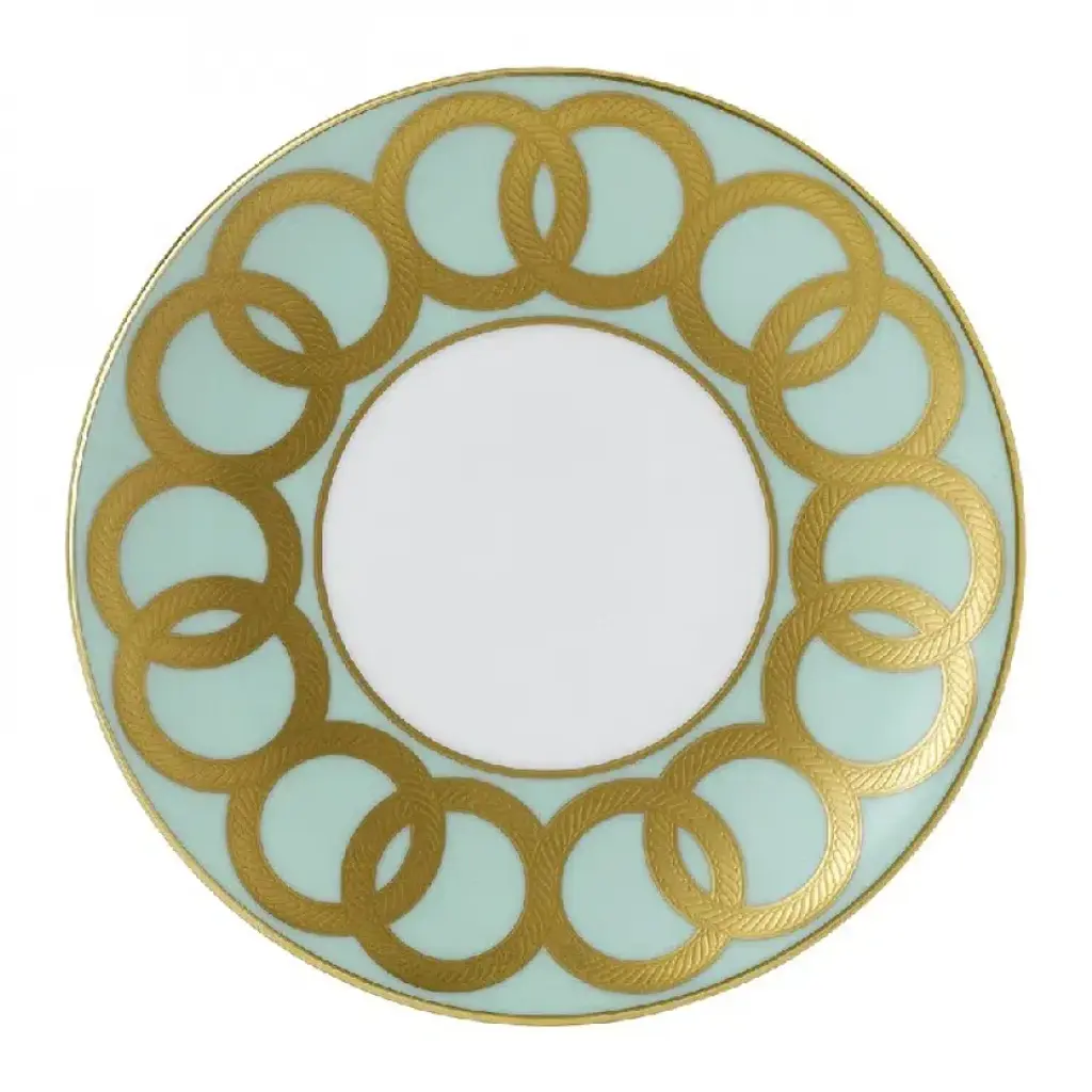 Inspired by Eighteenth Century’s scalloped porcelain, Aura is a modern and graphic reinterpretation of the models of the past. A soft and feminine writing, composed of intense strokes that are getting narrower towards lighter and more airy curves. The gold line and pellet illuminate the shaded blue of the model. Thus this decor writes a subtle and elegant color intensity. Raynaud was established in 1849 and is the only survivor of 11 porcelain factories existing in Limoges, France. After years of research, Raynaud discovered techniques to create infinite combinations of fade-resistant decorations that is still used by porcelain makers. Boasting a client list of numerous presidents to Princess Diana, Raynaud has been the synonym of quality, known and recognized on every continent.