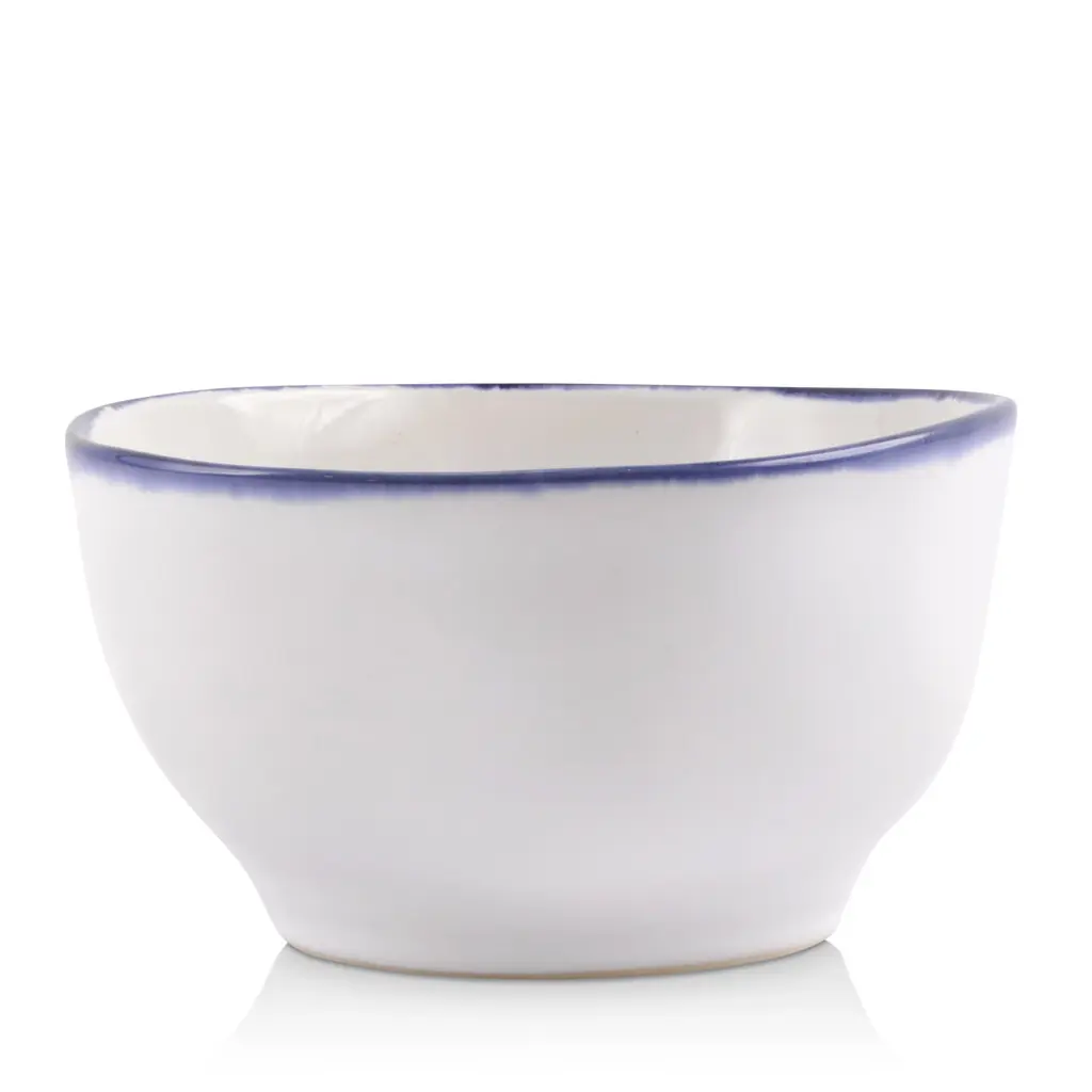 Showcasing the skill of Italian artisan Francesco Venzi, the VIETRI Aurora Edge Collection adds sophisticated simplicity to everyday dining with handcrafted stoneware shapes accented by vibrant cobalt trim.