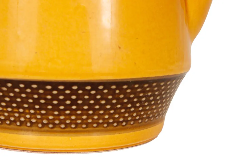 A hand painted ceramic and brass table lamp made by Frederick Cooper. The elegant vase with art deco inspired lines has petite angular handles at the neck. Hand painted throughout with florals and foliage in bright coastal colors. The brass base is decorated with a cross hatch pattern and the brass cap supports the harp and socket with the Frederick Cooper label. Measure 21.5"H to top of socket, 30.5"H to top of finial.