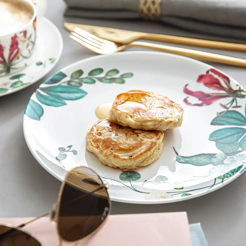 Be transported into a world of birds of paradise and exotic plants with the Avarua dining collection from Villeroy & Boch. It pays homage to the travels of navigator and explorer James Cook, telling the story of his tropical discovery with artistic flair. The premium porcelain collection features intricate flowers, leaves and hummingbirds balanced by 22K-gold detailing for a fantastic, three-dimensional effect.