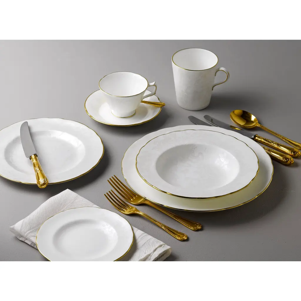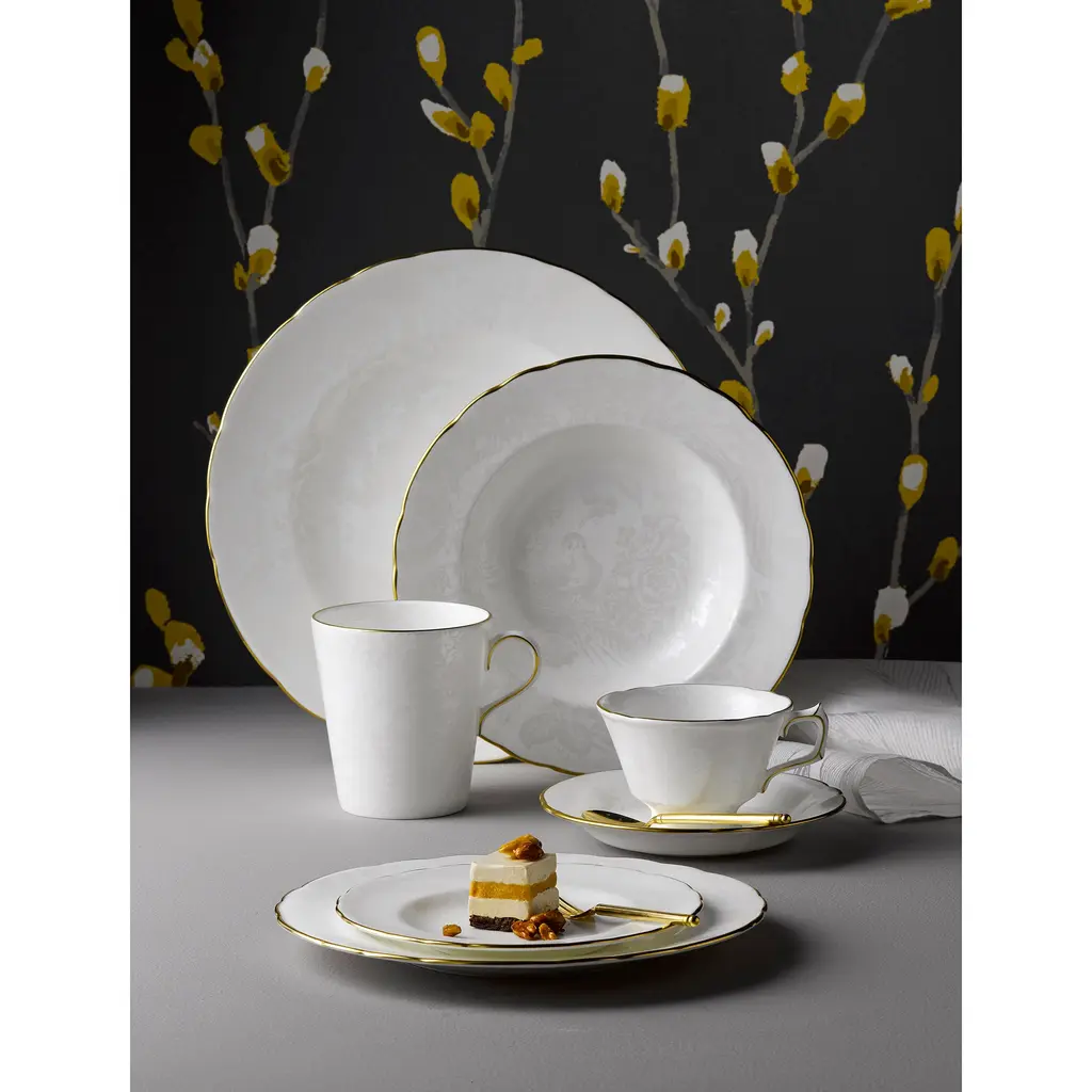 Featuring translucent pearl design, the Aves pattern is adapted from an embroidery pattern by painter, Albert Gregory. It is elegantly designed to be a statement pattern, adorned with dramatic birds of paradise and peacocks against rich white bone china. The original Avesbury pattern has appeared on Royal Crown Derby's luxury tableware since 1932. Handmade in England.