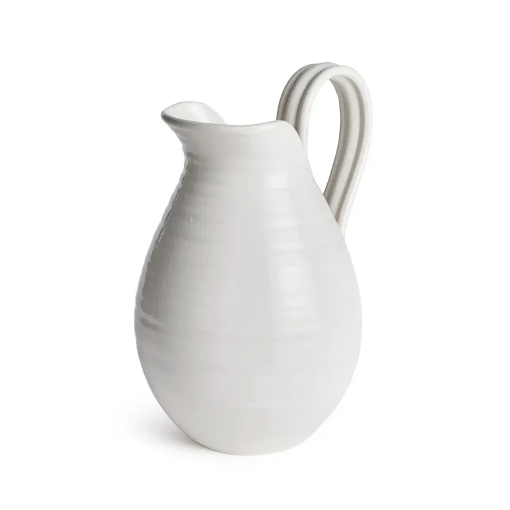 Reminiscent of a stately bird in quiet contemplation, the Aviary Pitcher No. 3 from Sir Madam offers a refined presence. This elegant vessel is brought to life through meticulous hand-carving and slip-casting techniques by artisans in Sri Lanka. Its tall, graceful form, available in glossy creamware or matte black terracotta, adds a touch of sophistication to any setting. Use it to elevate your beverage service, showcase botanical arrangements, or simply appreciate its inherent sculptural beauty. Highlights: